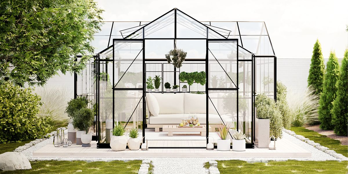 Predlžovací modul pre skleníky Royal Green Standard s tvrdeným sklom a hliníkom. .. viac