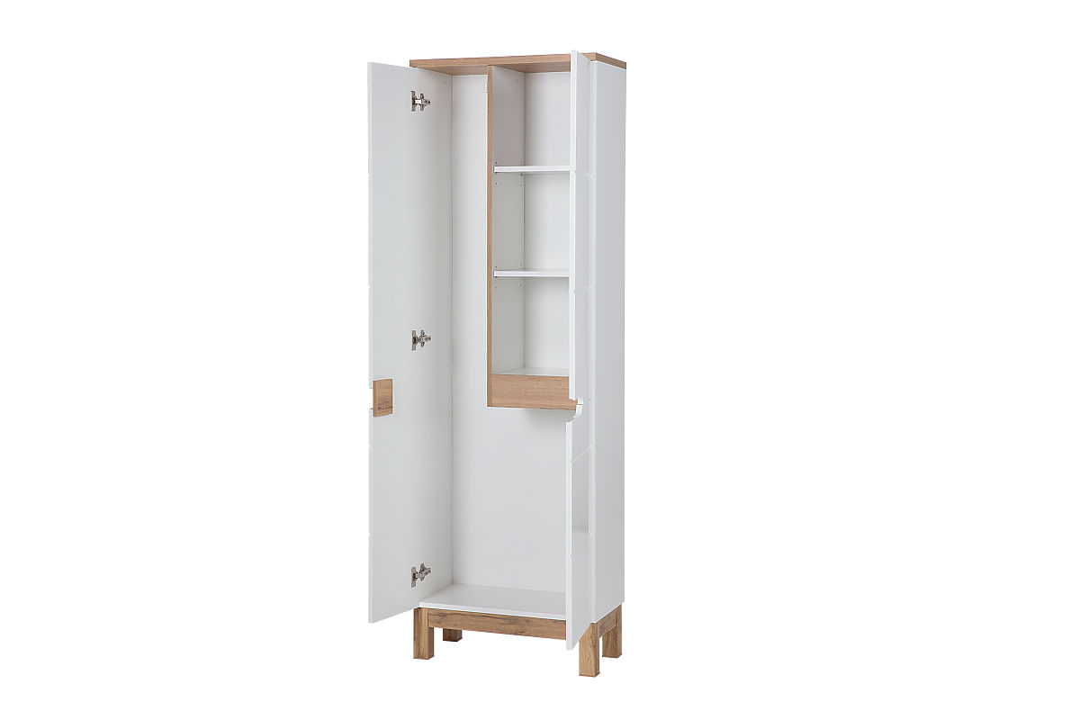 Vysoká skrinka s tromi dverami a štyrmi úložnými priestormi. .. viac