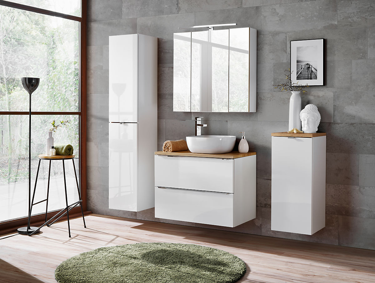 Skrinka pod umývadlo s dvoma zásuvkami a bielym leskom. .. viac