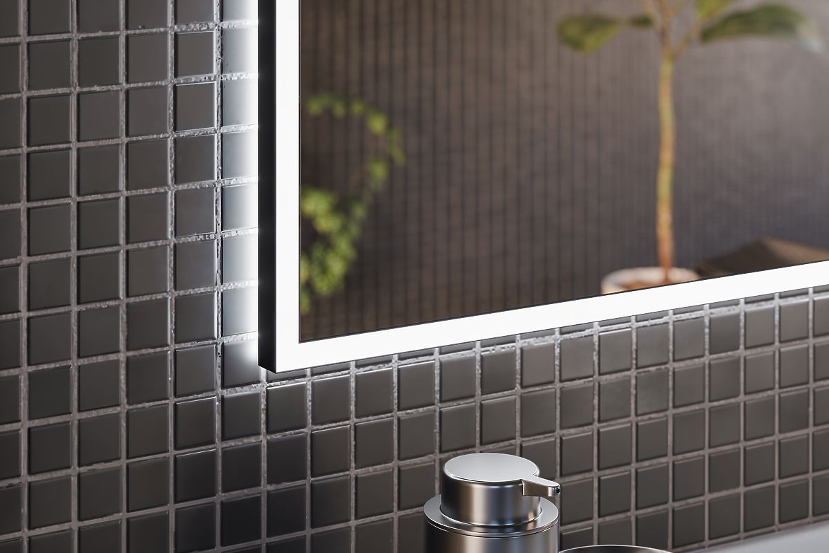 Obdĺžnikové LED zrkadlo s grafitovým rámom a studeným svetlom. .. viac