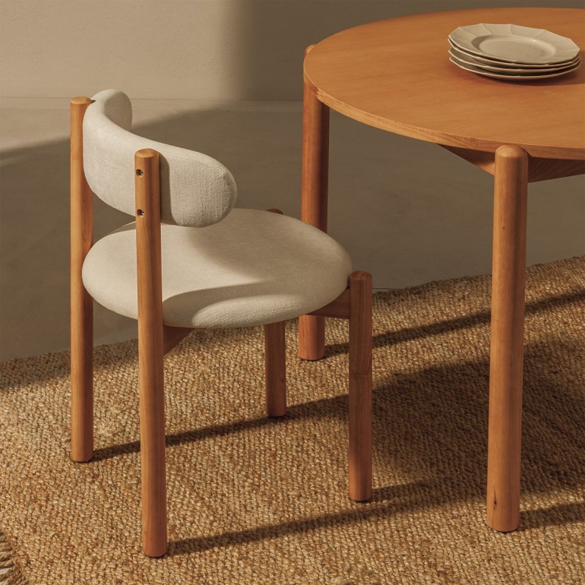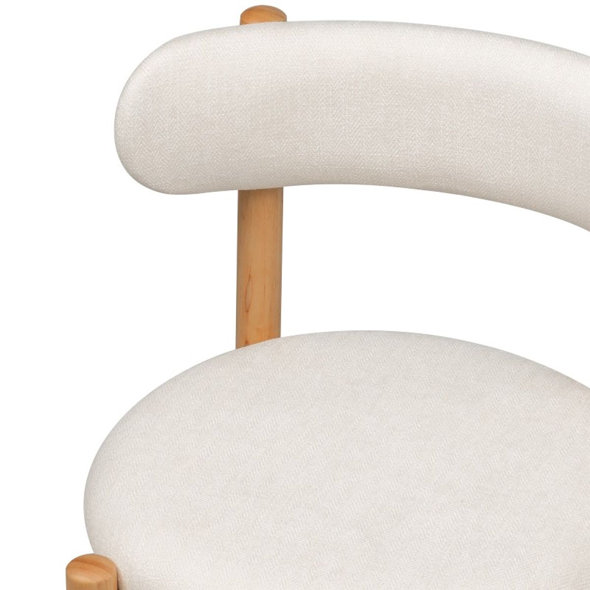 Stolička Yoko je stelesnením jemnej elegancie a nadčasového dizajnu. Okrúhle sedadlo a jemne zaoblené operadlo tvoria súdržný tvar, ktorý priťahuje pozornosť, zatiaľ čo mäkké, krémové čalúnenie dodáva jemný pôvab, prináša teplo a harmóniu do priestoru. Stabilné nohy z kaučukového dreva dodávajú prírodné čaro a zaisťujú trvanlivosť. Model Yoko je dokonalým spojením štýlu a funkčnosti, ktoré obohatí každý interiér.