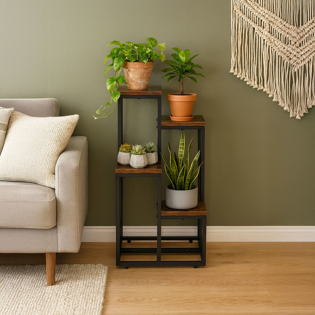 Stojan na kvety ModernHome sa skvele hodí do každej miestnosti – od moderného obývacieho pokoja až po štýlovú kanceláriu. Vďaka univerzálnemu dizajnu a kompaktným rozmerom umožňuje maximálne využiť dostupný priestor a umožňuje efektné aranžovanie kvetov. Môžete naň umiestniť kvetináče s bylinkami v kuchyni, paprade v hale alebo dokonca okrasné rastliny v predsieni. Je to ideálne riešenie pre tých, ktorí chcú do svojho okolia priniesť viac zeleně a elegancie a oživiť tak každý interiér. Pridajte ho do svojho priestoru a užívajte si krásu rastlín každý deň.