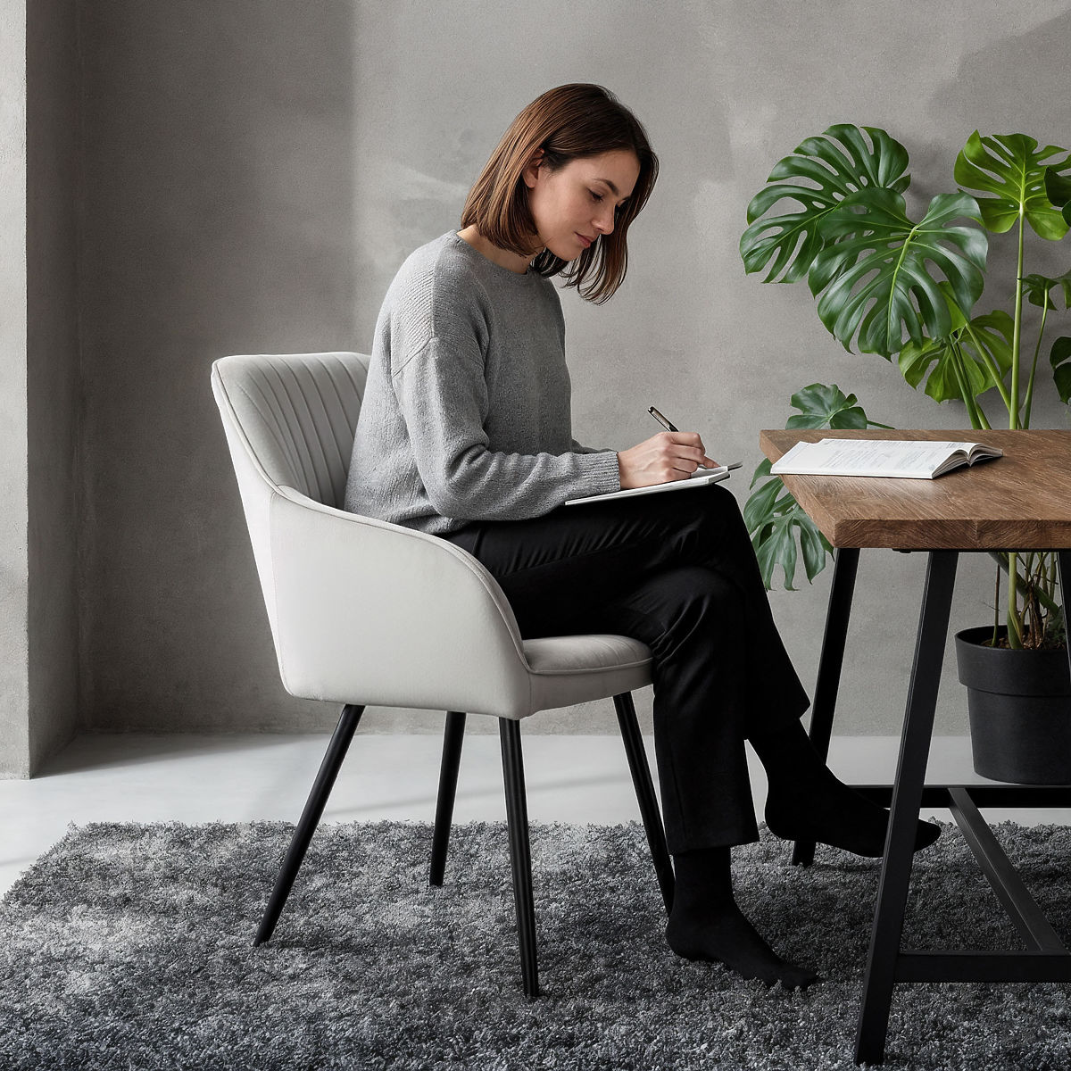 Zamatové stoličky sú kombináciou elegancie a pohodlia, ktoré sa dobre hodia do moderných aj klasických interiérov. Mäkké čalúnenie im dodáva útulný charakter a jednoduchý tvar zabezpečuje univerzálne použitie. Sú štýlovým a praktickým doplnkom jedálne, obývacej izby alebo kancelárskeho priestoru.