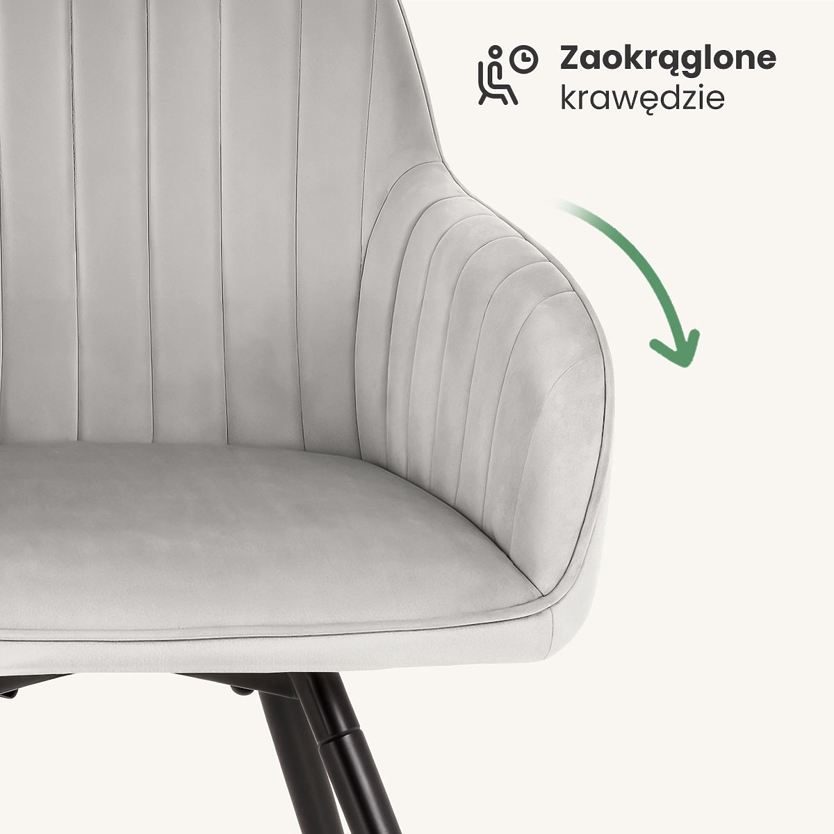 Otočná stolička TURNO je určená pre milovníkov moderných, chytrých a praktických riešení. Stolička sa otáča v rozsahu 360°, čo zaisťuje výnimočné pohodlie pri používaní. Skvele sa osvedčuje najmä v malých priestoroch – nie je potrebné ju odsúvať, čo znamená, že zaberá menej miesta ako bežná stolička. O pohodlie pri sedení sa stará elegantné, zamatové čalúnenie s vertikálnym prešívaním a výplň z peny s vysokou hustotou. Otočná stolička TURNO sa dokonale hodí do interiérov v industriálnom, modernom alebo mid-century modern štýle.