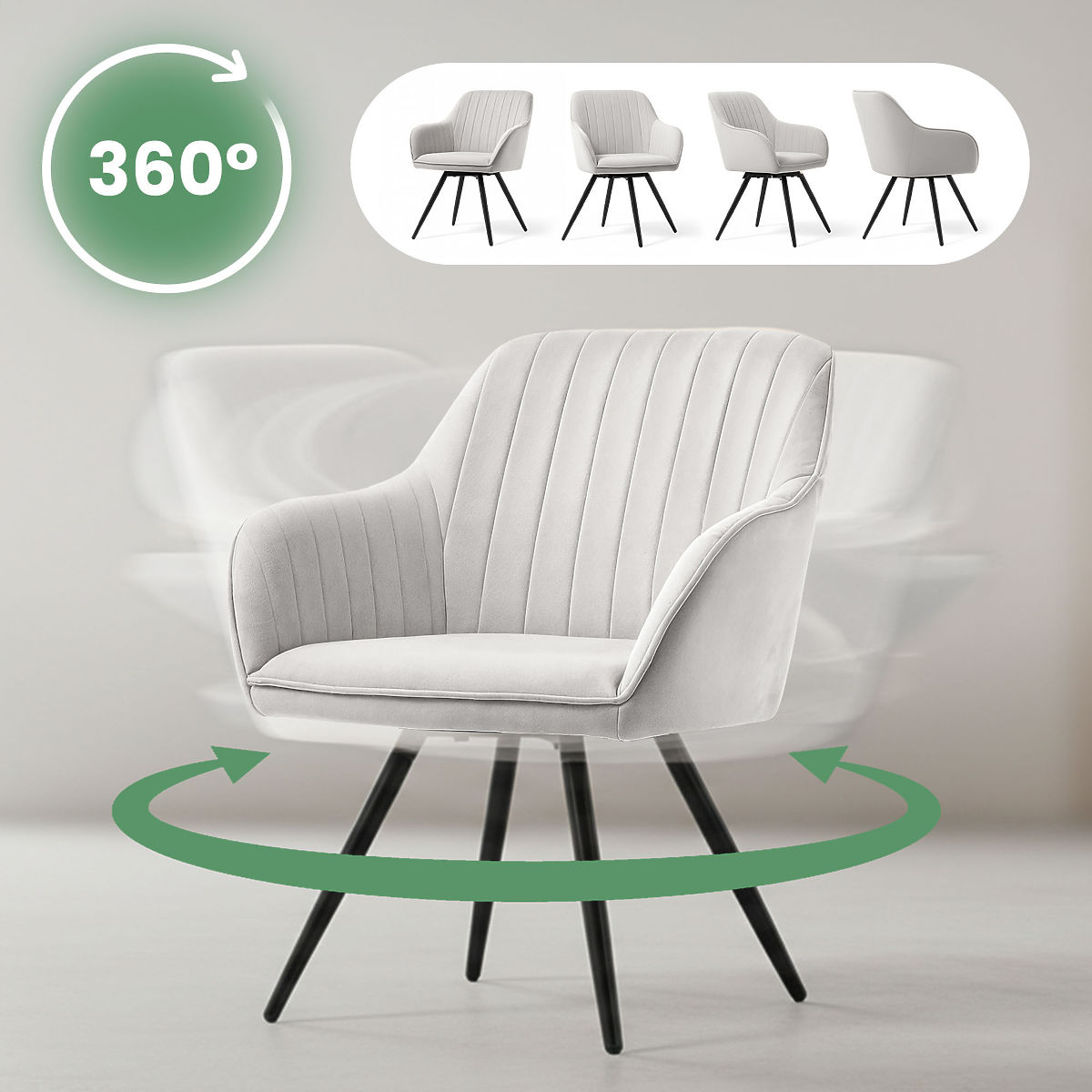 Lukahome.sk » Jedáleň a kuchyne / Jedálenský stoličky / 6x Zamatová otočná stolička s prešívaním Sivá TURNO Čierne nohy