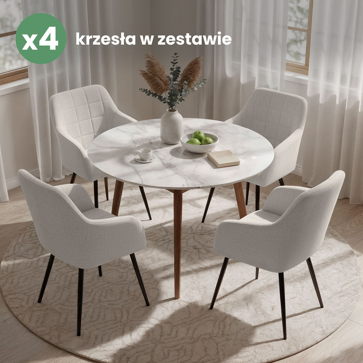 Lukahome.sk » Jedáleň a kuchyne / Jedálenský stoličky / 4x Čalúnená stolička so štvorcovým prešívaním Krémová LUXANO Čierne nohy látka Lumos