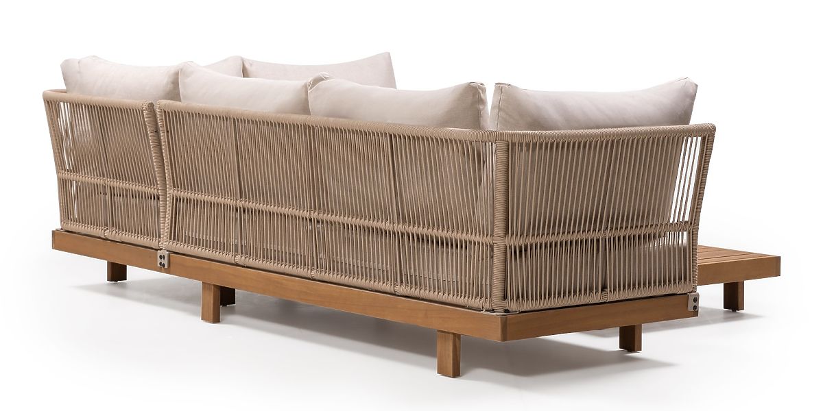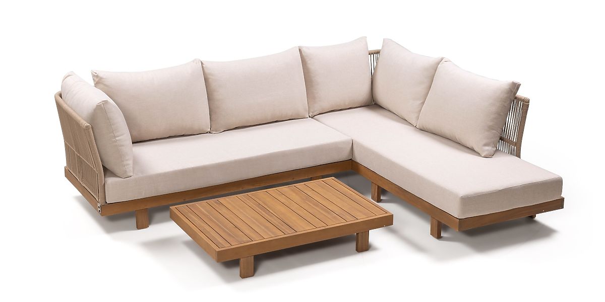 Vytvorte si svoju vysnívanú relaxačnú zónu na čerstvom vzduchu s našou bestsellerovou záhradnou rohovou sedačkou Borgetto! Jej pevná konštrukcia z odolného akáciového dreva a práškovo lakovaného hliníka zaručuje nielen mimoriadnu odolnosť, ale aj jedinečný vzhľad, ktorý rozhodne upúta pozornosť. Ručne pletené operadlo z odolného lana odolného proti UV žiareniu je výnimočným prvkom, ktorý dodá vašej záhrade alebo terase unikátny, dizajnový charakter. Súčasťou rohovej sedačky Borgetto sú silné vankúše so zipsom, ktoré vám zabezpečia mimoriadne pohodlný odpočinok. Ich poťahy sú vyrobené z vodeodolného polyesteru odolného proti UV žiareniu, avšak pre zachovanie ich trvanlivosti odporúčame skladovať ich na chránenom mieste počas dažďa. Okrem toho obdĺžnikový konferenčný stolík, ktorý je súčasťou sady, dokonale dopĺňa celok a vytvára priestor pre stolovanie na čerstvom vzduchu alebo relaxáciu pri káve. Je potrebné zdôrazniť, že drevo použité na výrobu sady má certifikát FSC® – pochádza z lesov spravovaných podľa zásad udržateľného rozvoja. Vďaka tomu nielen investujete do pohodlia, ale aj sa staráte o budúcnosť našej planéty. Aby nábytok zostal v perfektnom stave po dlhú dobu, odporúča sa počas zimného obdobia skladovať ho na suchom a vetranom mieste pod prístreškom, aby bol chránený pred poveternostnými vplyvmi. Nábytok vyrobený z prírodného dreva si zachováva jeho charakteristické vlastnosti, preto sú všetky nerovnosti, odreniny, škrabance, suky, praskliny, štrbiny, dierky, prehĺbeniny, nerovné hrany, rôzne textúry, farebné rozdiely a ďalšie nepravidelnosti v štruktúre zámerne zachované počas výrobného procesu. Tieto vlastnosti podčiarkujú autentickosť materiálu a dodávajú každému nášmu produktu unikátny charakter, čo môže viesť k rozdielom vo vzhľade oproti prezentovaným fotografiám.