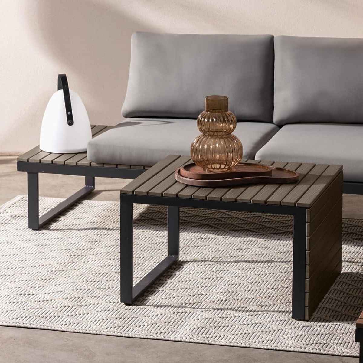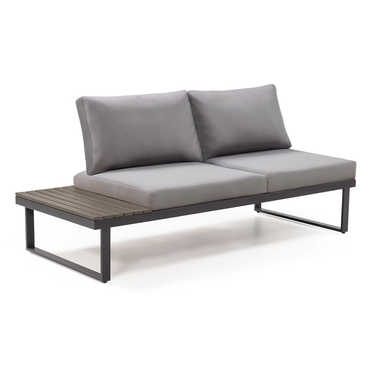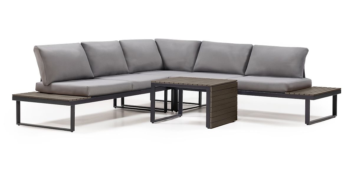Záhradná rohová sedačka Valongo s multifunkčným stolíkom a svetlosivými vankúšmi. .. viac