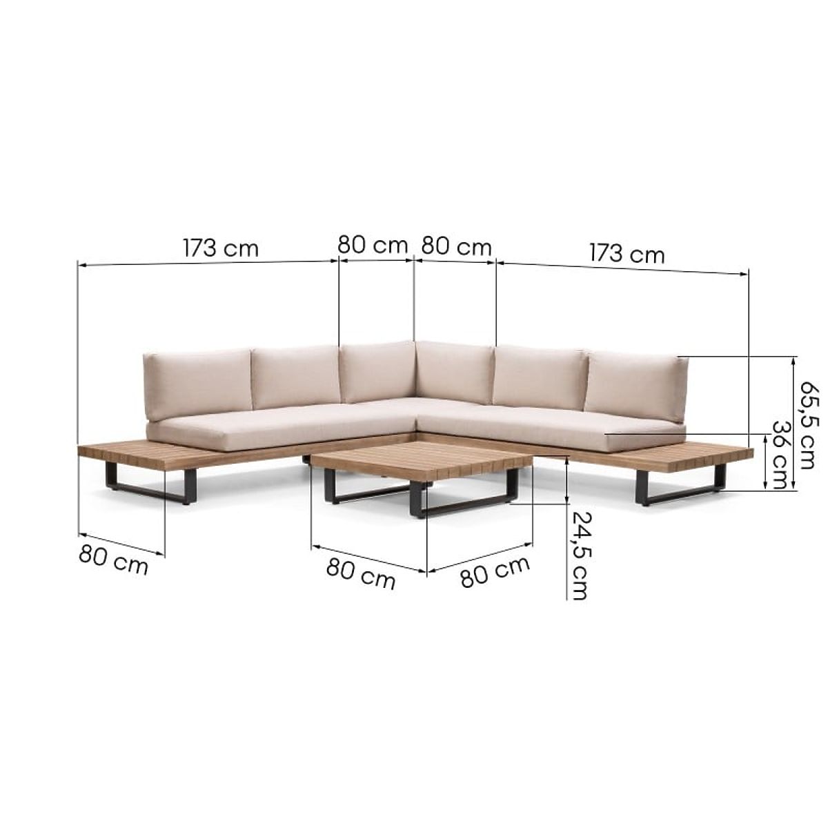 Záhradná rohová sedačka so stolíkom Borgo, akáciové drevo FSC, teakový vzhľad, béžová