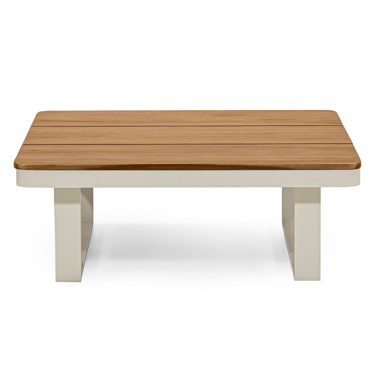 Záhradná rohová sedačka so stolíkom Porticato, akáciové drevo FSC, teakový vzhľad, svetlo béžová