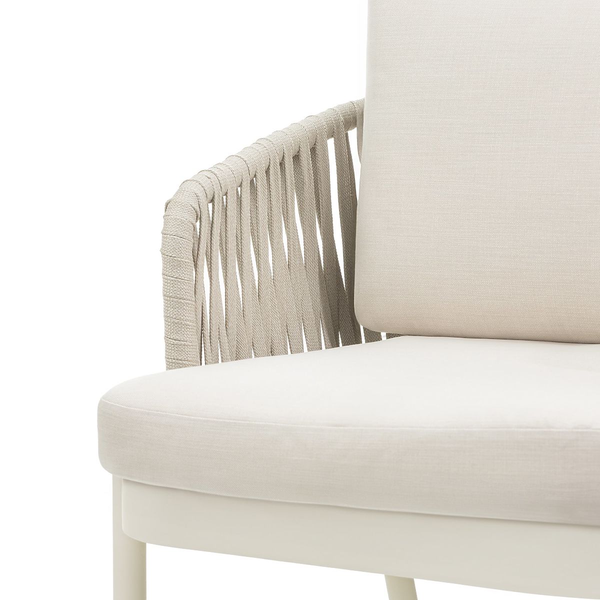 Dvanásť pohodlných kresiel s výpletom z lana a mäkkými vankúšmi ponúka vysoký komfort aj pri dlhom sedení. Vodoodpudivé poťahy sú snímateľné a ľahko udržiavateľné. Vďaka použitiu kvalitných materiálov je zostava odolná voči poveternostným vplyvom a vhodná na dlhodobé vonkajšie používanie.