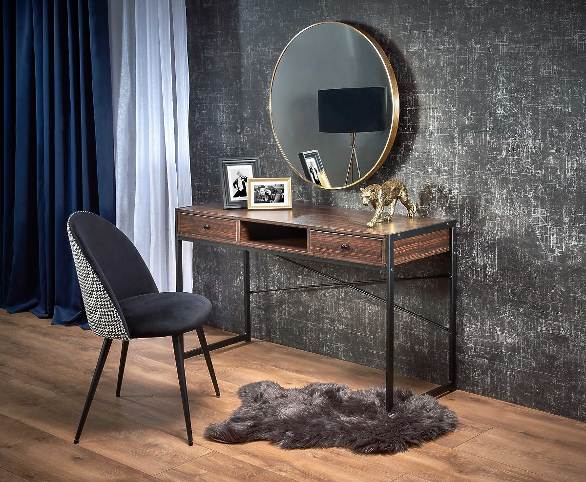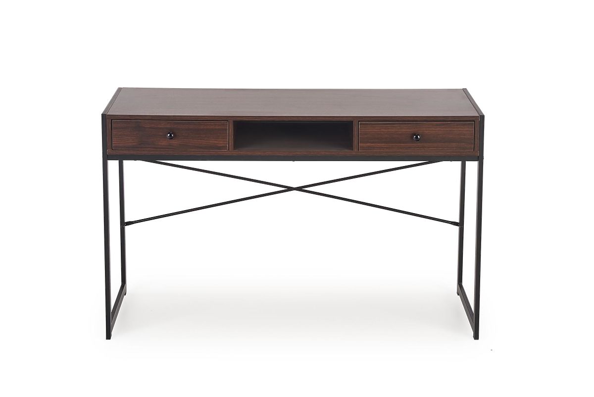 Písací stôl s orechovým a čiernym dizajnom. .. viac