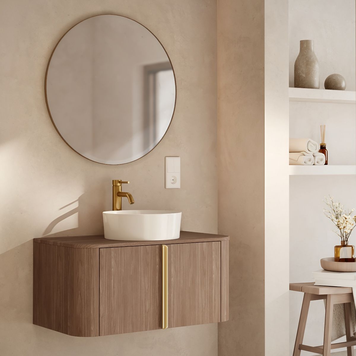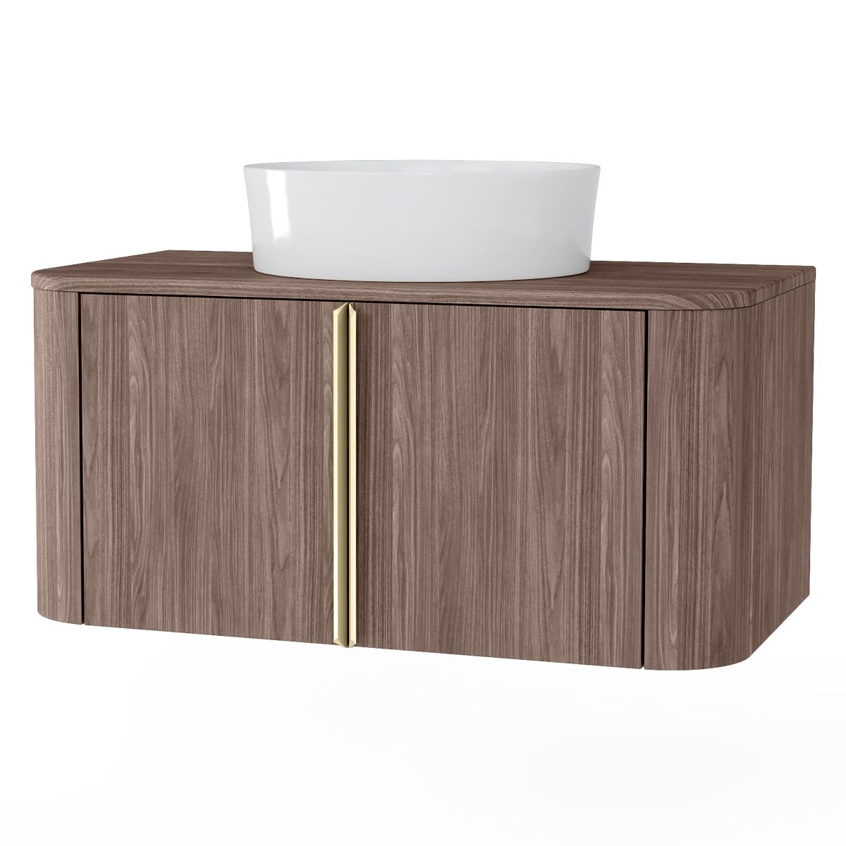 Lukahome.sk » Kúpeľňa a WC / Kúpeľňové skrinky / Skrinka pod umývadlo na dosku Bassa 80 cm, orech lincoln, zlaté úchyty, zaoblená