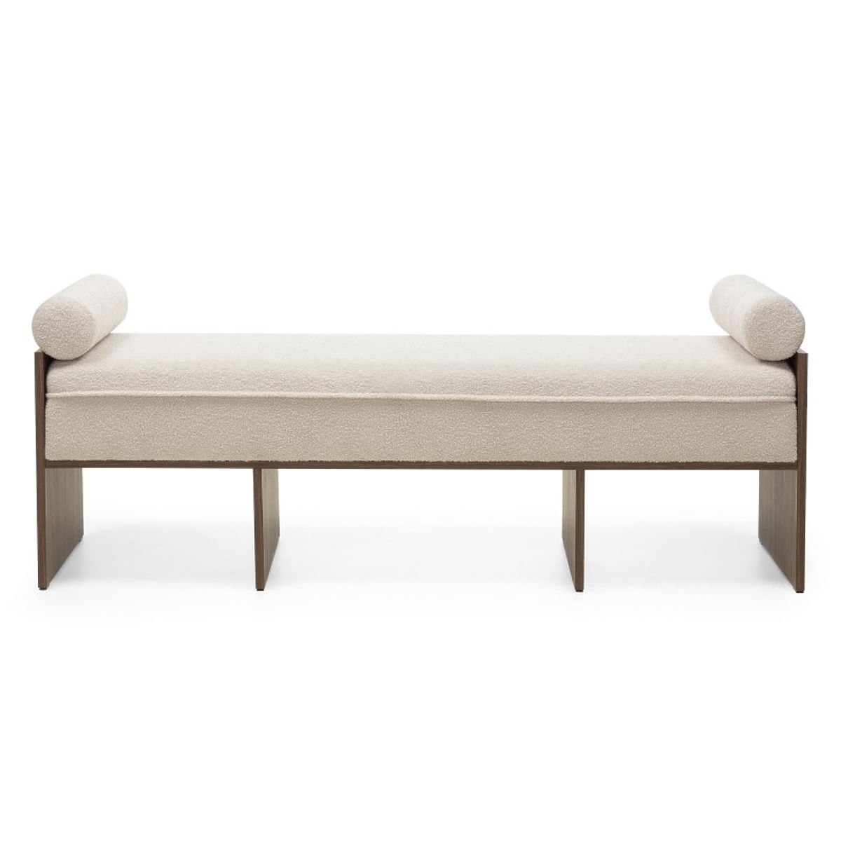 Lukahome.sk » Kreslá a sedenie / Lavica / Čalúnená lavica Loppo svetlo béžová, boucle, Orech Wisconsin