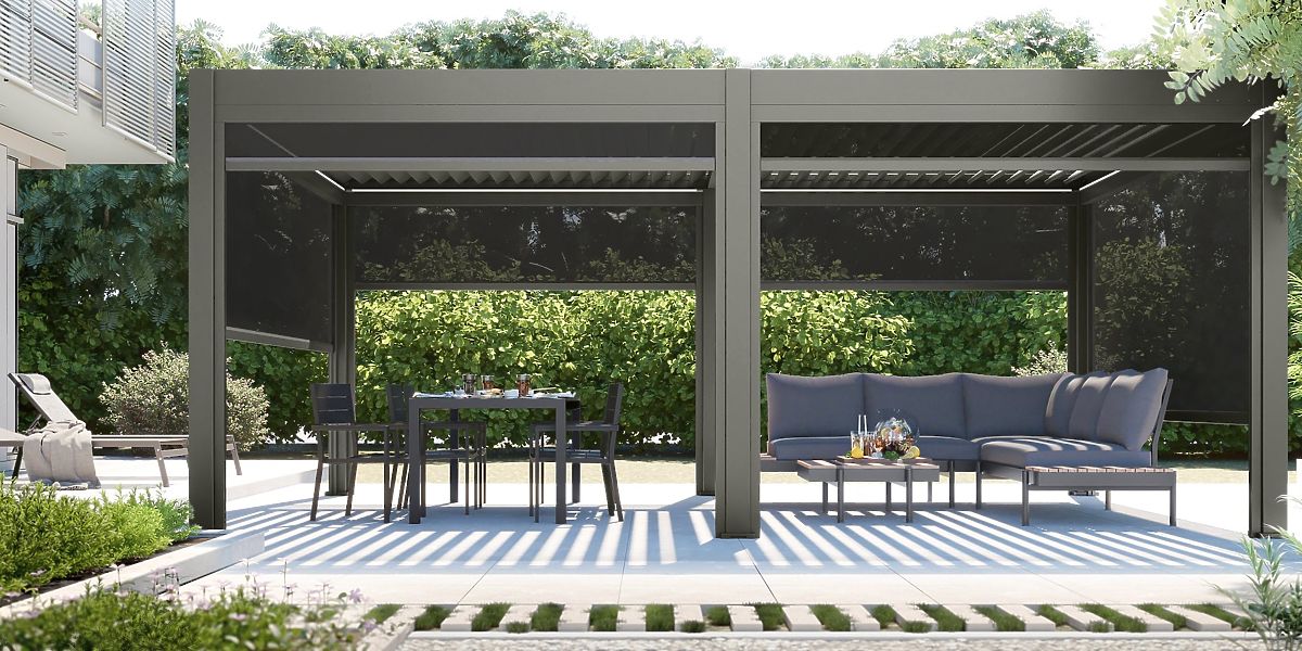 Lukahome.sk » Záhrada / Altánky / Samostatne stojaca záhradná pergola Lumera z hliníka, 4x6 m, bioklimatická, LED osvetlenie, elektric