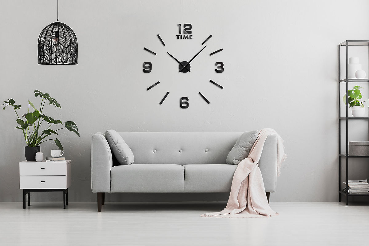 Moderné hodiny typu DIY - urob si sám. Ideálny doplnok do každej obývačky alebo kancelárie. Veľkosť hodín závisí na vás! Môžete im dať ľubovoľný priemer! Odporúčame veľkosť 80-100 cm, vtedy hodiny vyzerajú najlepšie. Hodiny na nalepenie na stenu alebo na iné hladké povrchy.