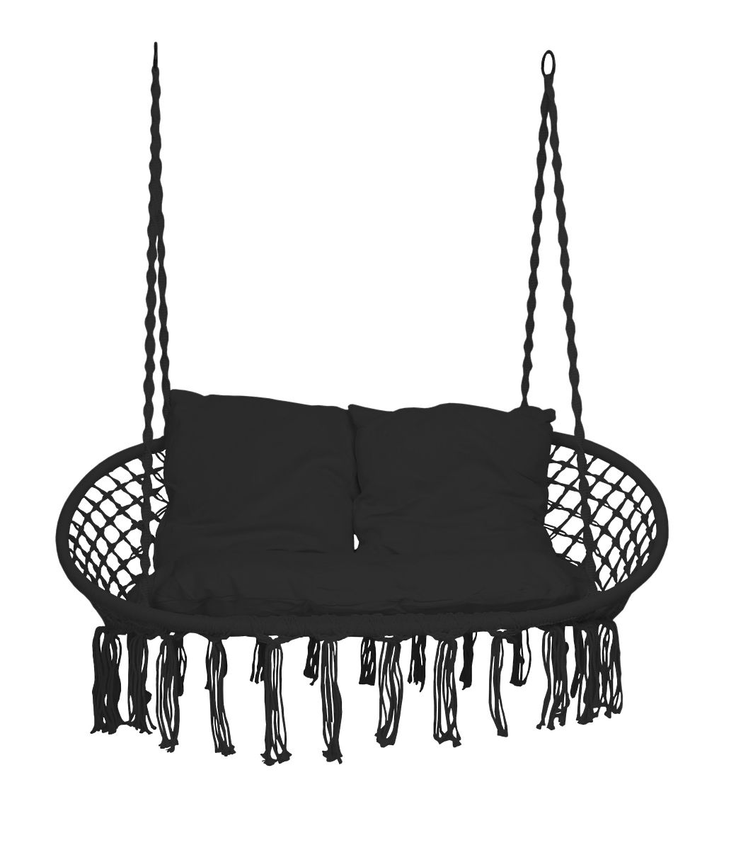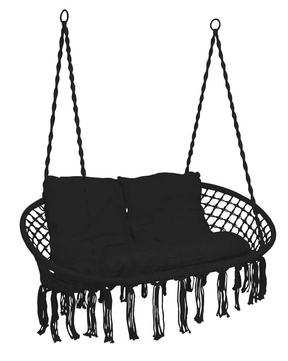 Závesné kreslo Bocianie hniezdo LAGOS čierne s vankúšmi