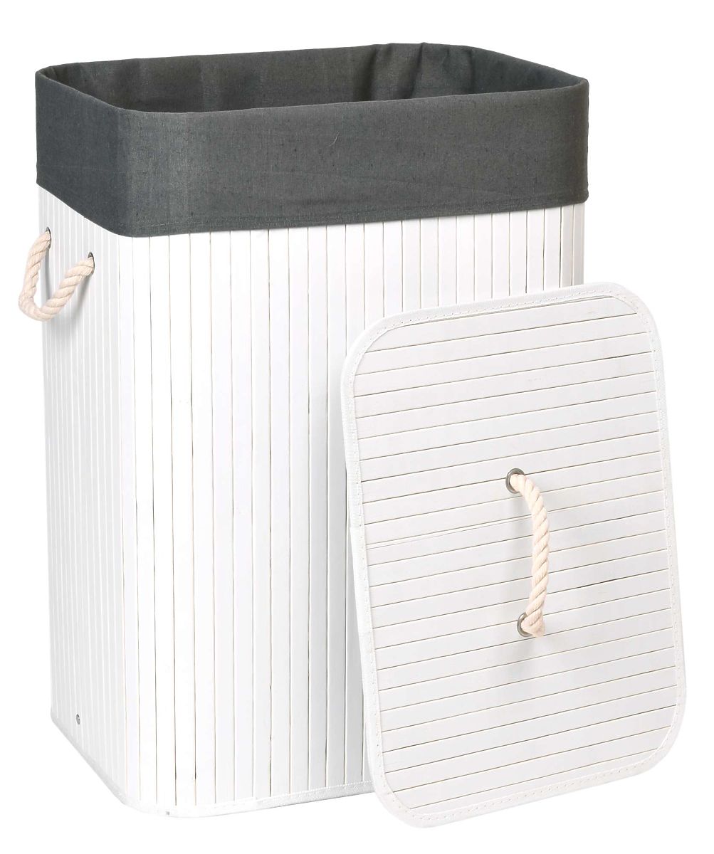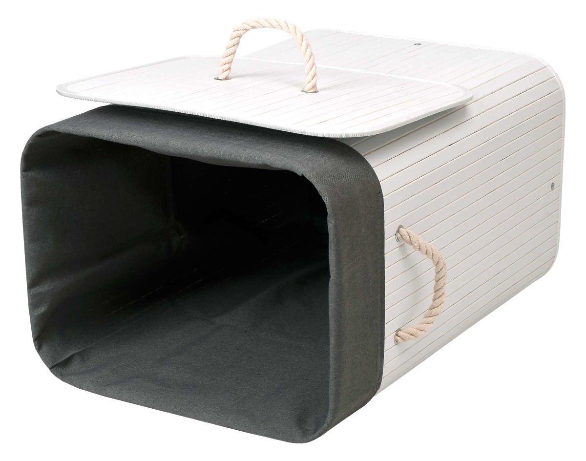 Bambusový kôš na bielizeň s vekom 80L bielo-sivý