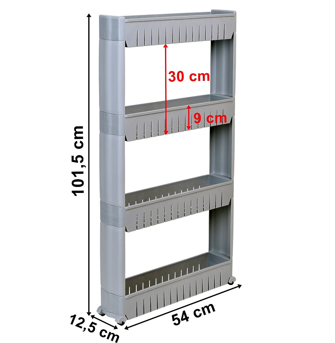 Mobilná skrinka ideálna pre úzke priestory, ako je kuchyňa alebo kúpeľňa. Jej modulárna konštrukcia z odolného plastu umožňuje ľahké prispôsobenie potrebám – police je možné pridávať alebo odoberať. Vďaka kompaktným rozmerom sa skvele hodí medzi skrinku a chladničku, práčku alebo na iné ťažko dostupné miesta. Kuchynský regál je výborný na ukladanie korenín, kuchynských doplnkov, kozmetiky, čistiacich prostriedkov a mnohých ďalších nevyhnutných vecí. Mobilitu zabezpečujú štyri kolieska, vďaka ktorým sa kúpeľňová skrinka na kolieskach ľahko premiestňuje tam, kde je potrebná.