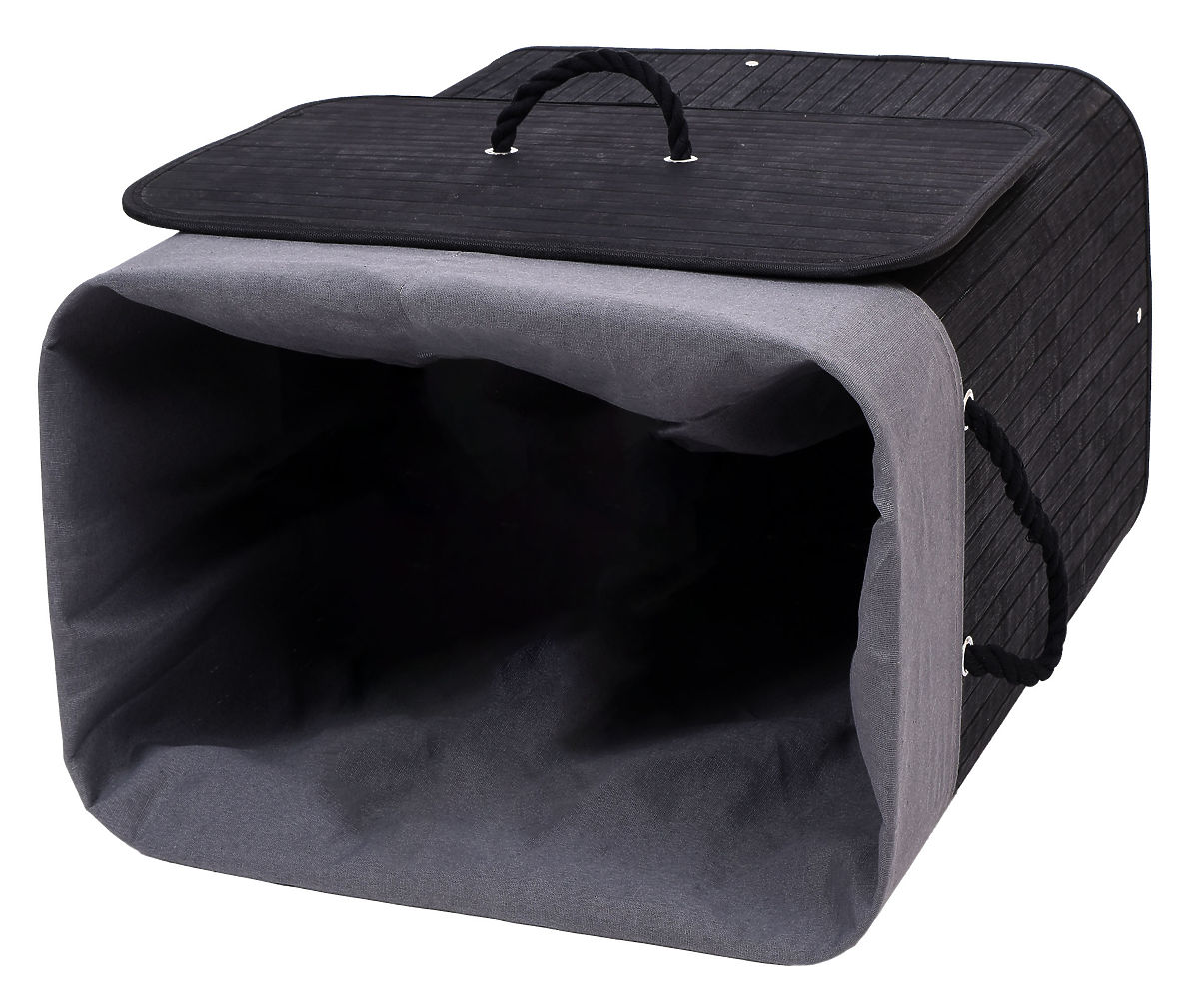 Bambusový kôš na bielizeň s vekom 80L čierno-sivý