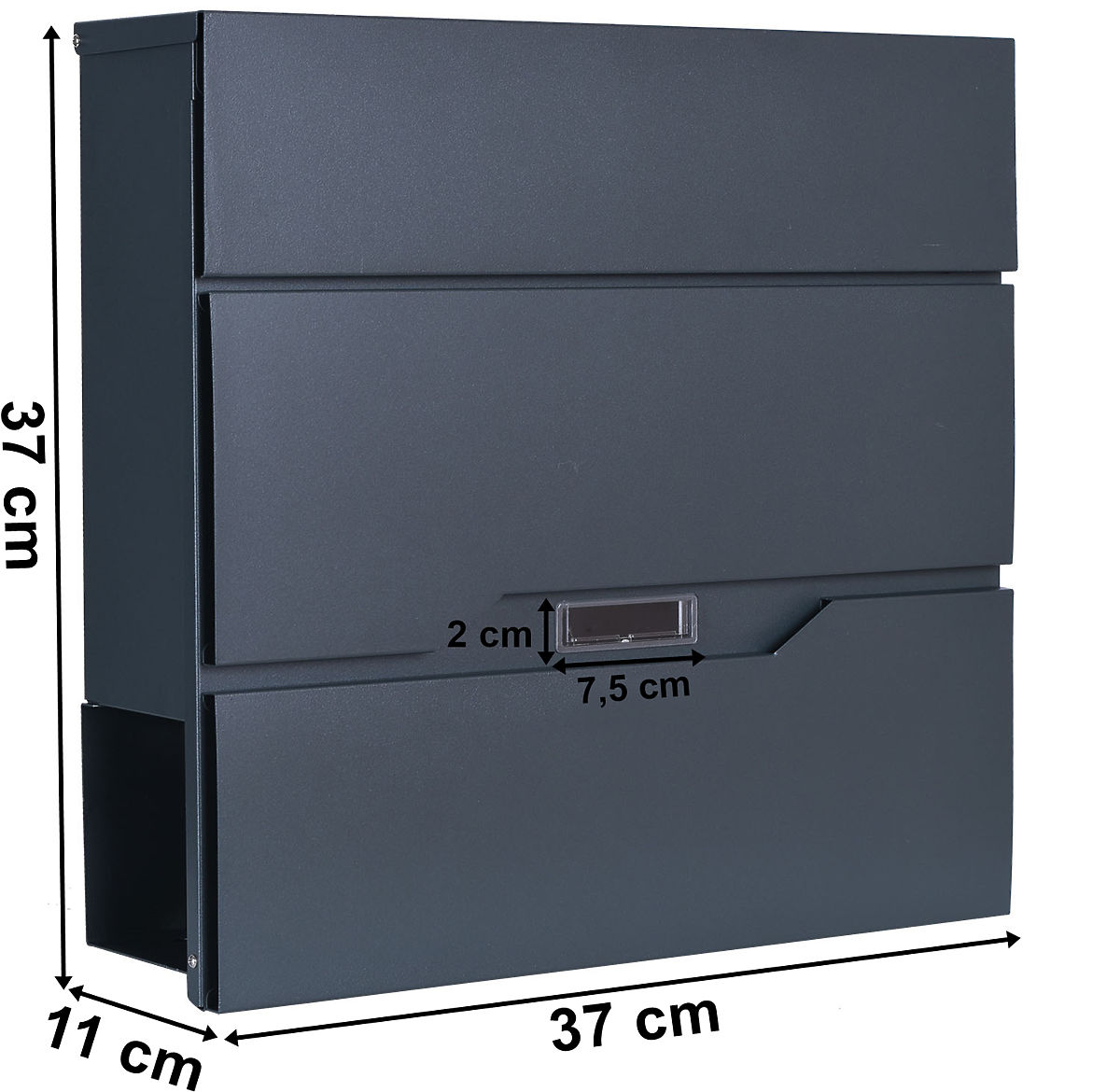 Štýlová a funkčná poštová schránka, ktorá kombinuje moderný dizajn s trvanlivosťou! Rozmery 37 x 37 x 11 cm, pevná pozinkovaná oceľ s práškovým nástrekom a odolnosť voči poveternostným vplyvom zabezpečujú, že je ideálna pre vonkajšie aj vnútorné použitie. Praktické adresné okienko umožňuje okamžite vidieť čakajúcu korešpondenciu. Otvor na listy 33 x 3,5 cm, ďalšie miesto na noviny a uzamknutie na kľúč – schránka Vidar je bezpečnosť a pohodlie!