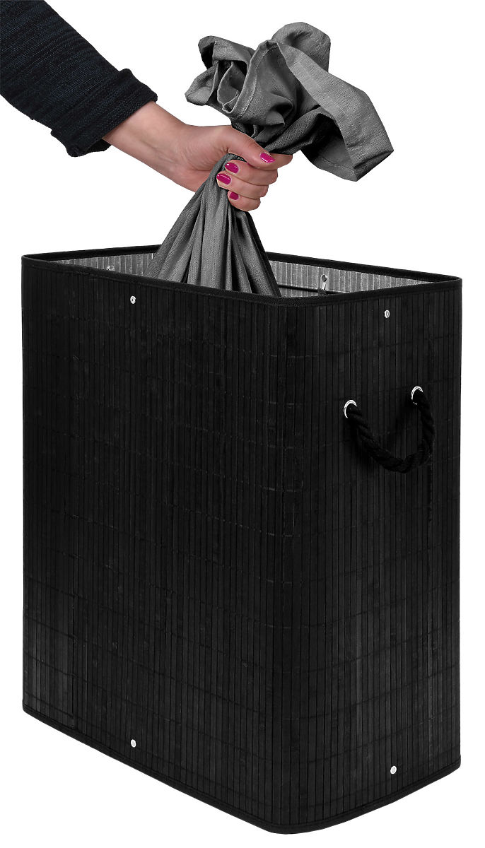 Bambusový kôš na prádlo s vekom 100L čierny Kapacita: 100 litrov | Farba: Čierna | 2 komory na svetlé a tmavé prádlo