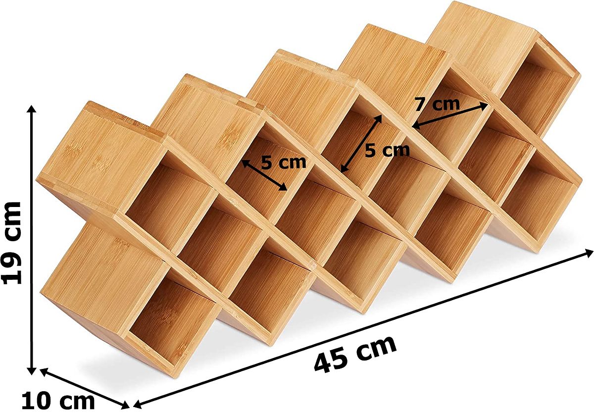 Vlastnosti produktu Materiál: 100% bambusové drevo Počet pohárov v balení: 18 ks Použitie: na korenie Možnosť vertikálneho a horizontálneho umiestnenia Možnosť položenia naplocho ako vložka do zásuvky Farba: prírodná Hmotnosť stojanu: 4,35 kg Hmotnosť pohára: 0,1 kg Objem pohárov: 125 ml V balení 72 nálepiek [60 hotových a 12 prázdnych]