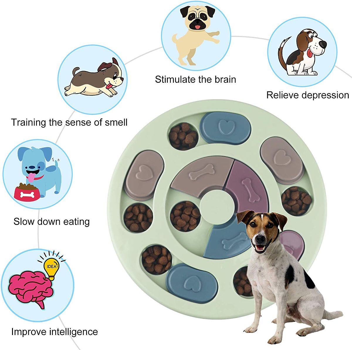 Vzdelávacie puzzle pre psa sú ľahko udržiavateľné a skladovateľné. Je to tiež ideálna hračka pre psov, ktorí potrebujú dodatočnú stimuláciu na zmiernenie úzkosti a nudy. Interaktívne puzzle sú najlepšou hračkou pre vášho psa, ktorá mu pomôže rozvíjať čuch a prinesie mu veľa radosti a zábavy.