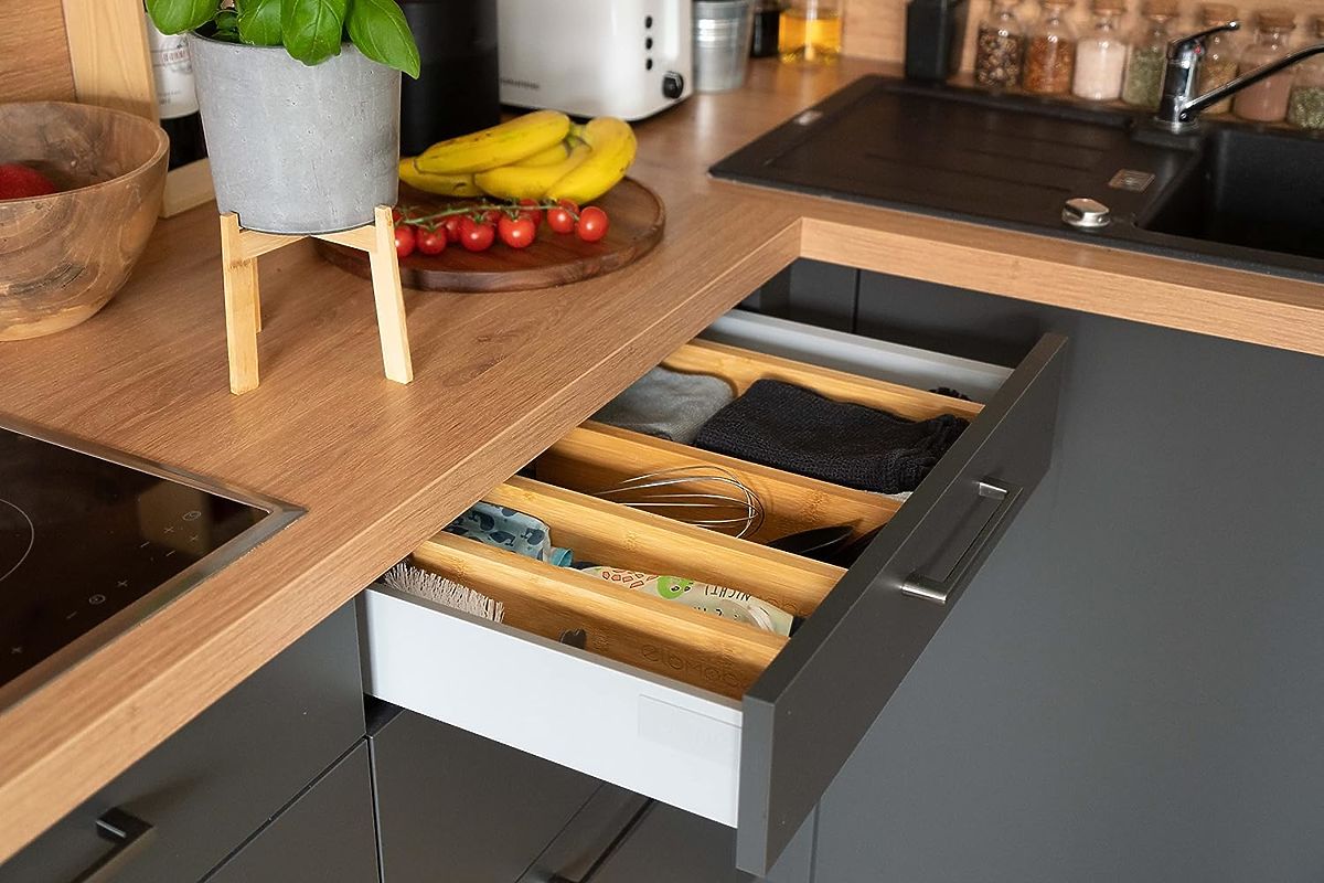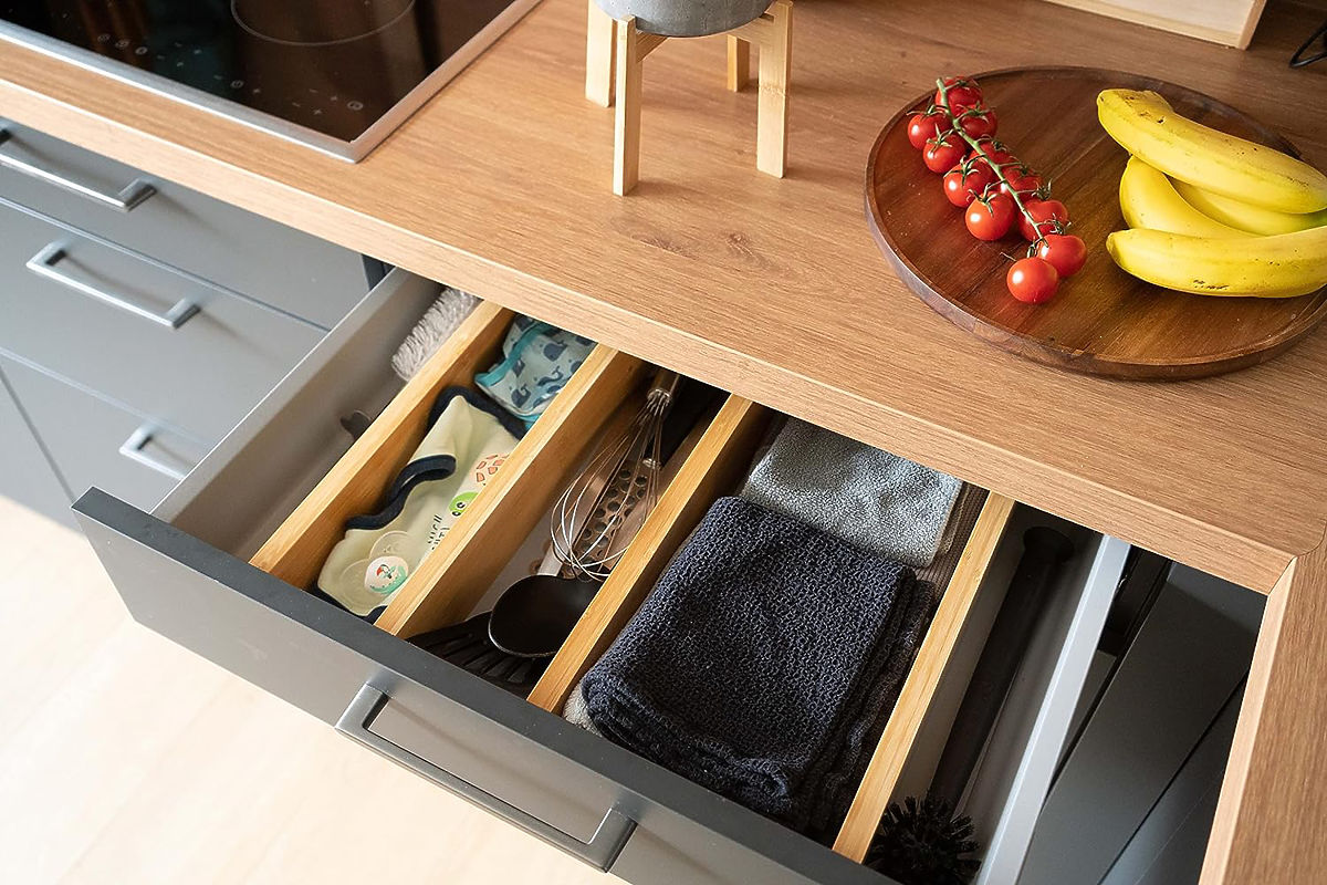 Predstavujeme sadu bambusových priečok do zásuvky RITA - ideálne riešenie pre efektívnu organizáciu v zásuvkách. Vyrobené z vybraného bambusu najvyššej kvality, táto sada vnesie prirodzený poriadok do vašej kuchyne alebo kancelárie. Obsahuje starostlivo vyrobené priečky s nastaviteľnou dĺžkou, ktoré sa prispôsobia rôznym veľkostiam zásuviek. Bambusové priečky RITA sú nielen funkčné, ale aj ekologické riešenie.