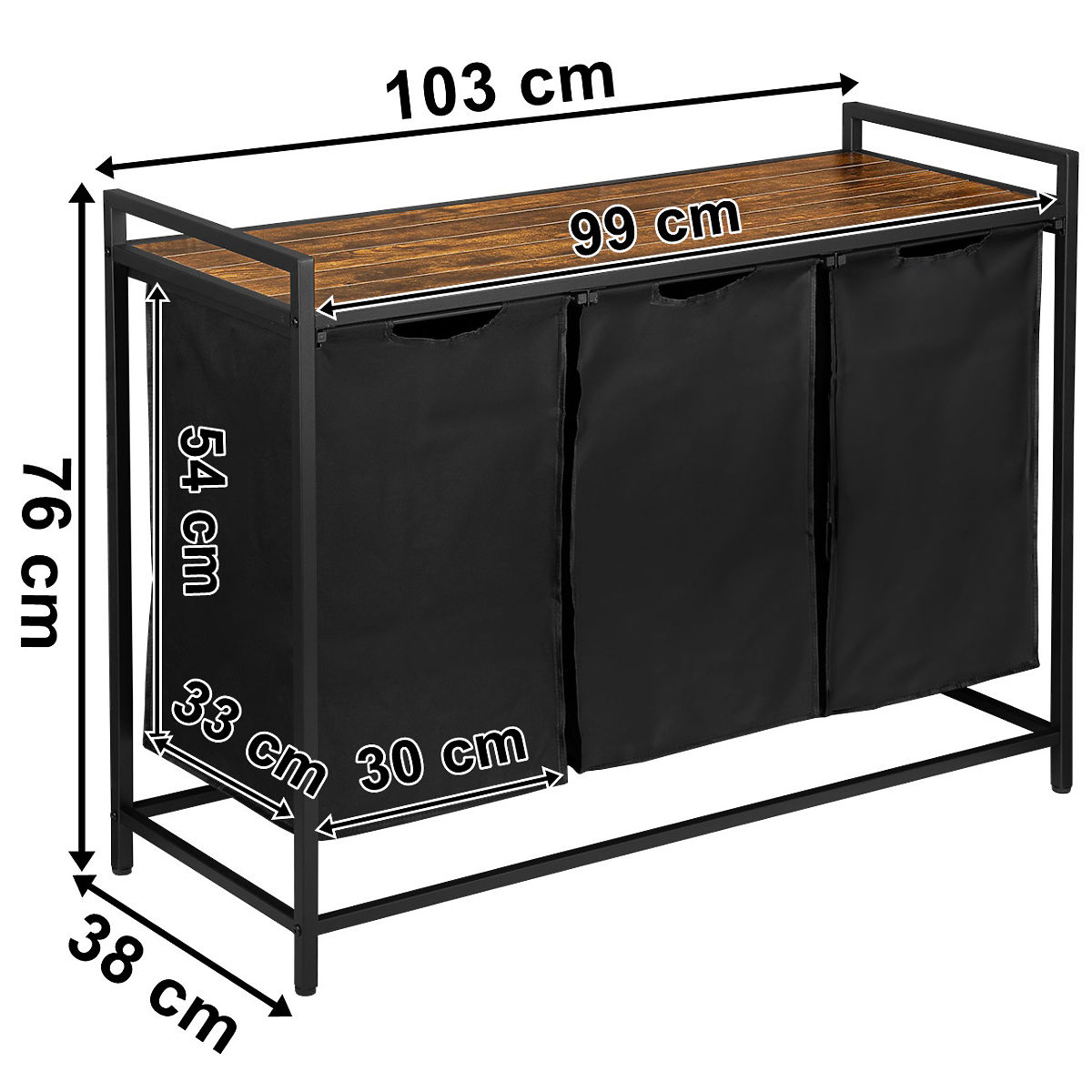 Trojkomorový kôš na bielizeň Artus je vynikajúcim riešením pre tých, ktorí si cenia poriadok a funkčnosť v kúpeľňovom priestore. Jeho loftový, industriálny dizajn sa skvele hodí do moderných interiérov, ponúkajúc maximálne pohodlie a úsporu miesta. Tri oddelené komory umožňujú presnú segregáciu bielizne, čo uľahčuje organizáciu každodenných povinností. Navyše praktická polica nad košmi je ideálnym miestom pre uteráky a kúpeľňové doplnky. S košom Artus nielen obohatíte estetiku svojej kúpeľne, ale aj zvýšite jej funkčnosť.