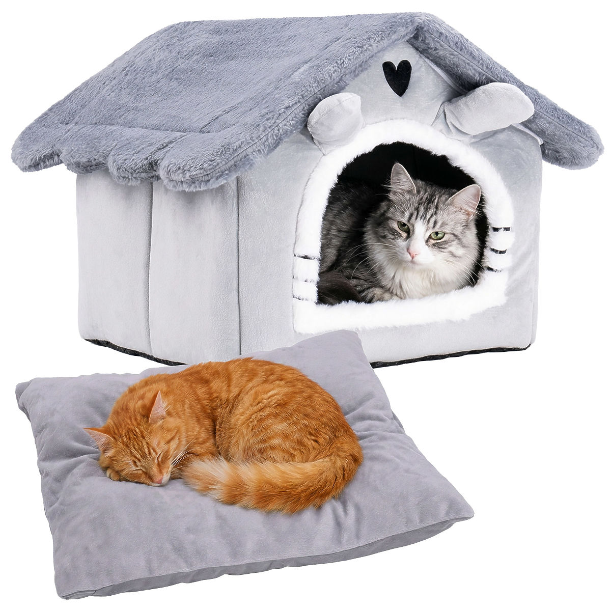 ✅ Plyšový a útulný: Príjemný na dotyk materiál robí domček mimoriadne pohodlným pre mačku.