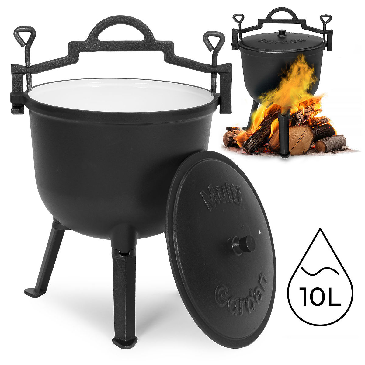 Liatinový kotlík MultiGarden s objemom 10L pre varenie na ohni. .. viac