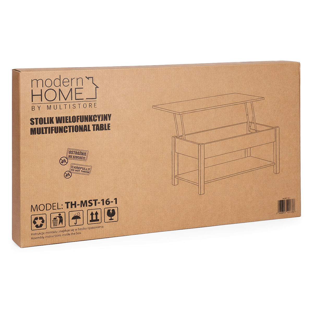 Konferenčný stolík s výklopnou doskou značky ModernHome je riešenie, ktoré sa prirodzene začleňuje do vášho každodenného rytmu. Osvědčí sa ako pri relaxácii s šálkou kávy, tak počas práce s notebookom alebo pri jedle pred televíziou. Vďaka svojej funkčnosti umožňuje pohodlne využívať priestor obývacej izby bez nutnosti siahať po ďalšom nábytku. Je to praktické centrum každodenných aktivít, ktoré uľahčuje organizáciu a zaručuje, že máte všetko vždy po ruke.