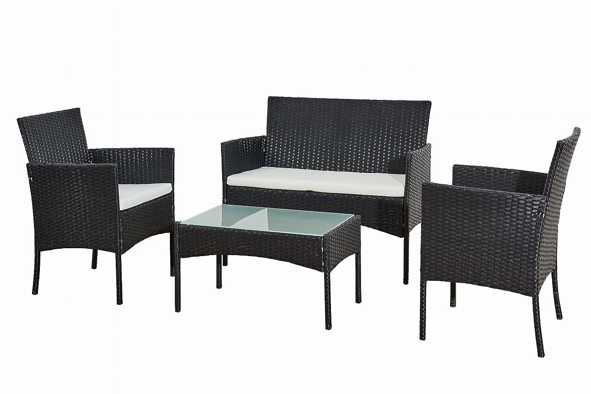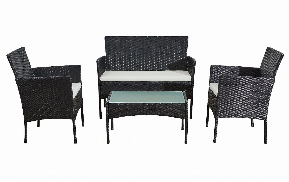 Balkónová sada z technoratanu (Pohovka + 2 x kreslo + stolík) COMODO čierna