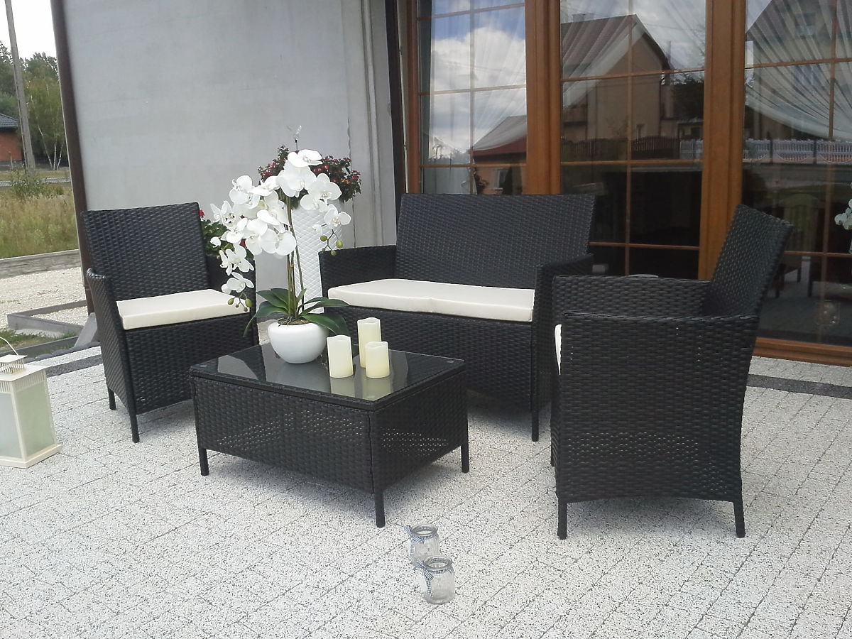 Sada ratanového nábytku COMODO je kvintesenciou jednoduchosti a elegancie, ktorá premení každé miesto na oddych na čerstvom vzduchu. Ich luxusný dizajn prináša jedinečnú atmosféru, ideálnu na relaxáciu a užívanie si voľného času. Vyrobené zo syntetického ratanu, tieto kusy nábytku sú mimoriadne odolné voči všetkým poveternostným podmienkam, vrátane dažďa a UV žiarenia, čo zaručuje ich trvanlivosť a krásny vzhľad po mnoho rokov. Nadčasová elegancia nábytku COMODO zabezpečuje, že sa dokonale hodí do akéhokoľvek prostredia a stáva sa jeho výnimočnou ozdobou. Navyše, COMODO je nábytok, ktorý očarí svojou ľahkosťou a jednoduchou údržbou. Mäkké vankúše a ergonomické tvary poskytujú bezkonkurenčný komfort užívania, zatiaľ čo starostlivé spracovanie a dôraz na detaily podčiarkujú ich vysokú kvalitu. Voľbou nábytku COMODO investujete do štýlu, pohodlia a trvanlivosti, ktoré vás budú tešiť po mnoho sezón. Farba sady COMODO: čierna – jednoliata Pletenina: technoratan 7-8mm x 1,2mm, jemne pruhovaná štruktúra Konštrukcia nábytku: oceľová (vyžaduje jednoduché zostavenie) Sada sa skladá zo 4 prvkov (po zostavení): 2 x kreslo: šírka: 58 cm hĺbka: 57,5 cm výška: 80 cm 1 x pohovka: šírka: 104 cm hĺbka: 57,5 cm výška: 80 cm 1 x stolík (s matnou sklenenou doskou z 5mm bezpečnostného skla): dĺžka: 71 cm šírka: 41 cm výška: 37 cm Vankúše sú zahrnuté v cene sady (3 ks na sedáky). Všetky majú snímateľné poťahy na zips, vyrobené z vodeodolného materiálu (100% polyester), ktoré možno prať pri nízkych teplotách. Hrúbka vankúšov na sedáky: 5 cm. Technoratan je odolný voči škodlivým vplyvom poveternostných podmienok, avšak pre ešte dlhšie zachovanie nezmeneného vzhľadu nábytku odporúčame používanie a skladovanie produktu pod strechou alebo zakúpenie ochranného krytu. Kryt v tmavo šedej farbe je jednodielny a má dole sťahovaciu šnúrku. Všetky kryty sú šité na zákazku a doba realizácie je cca 14 pracovných dní. Fotografie od našich zákazníkov: