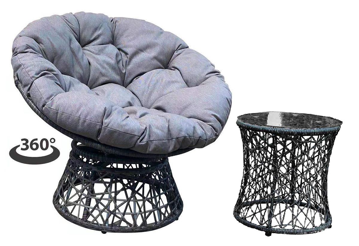 Záhradné lehátko z technoratanu + stolík TWIST sivý