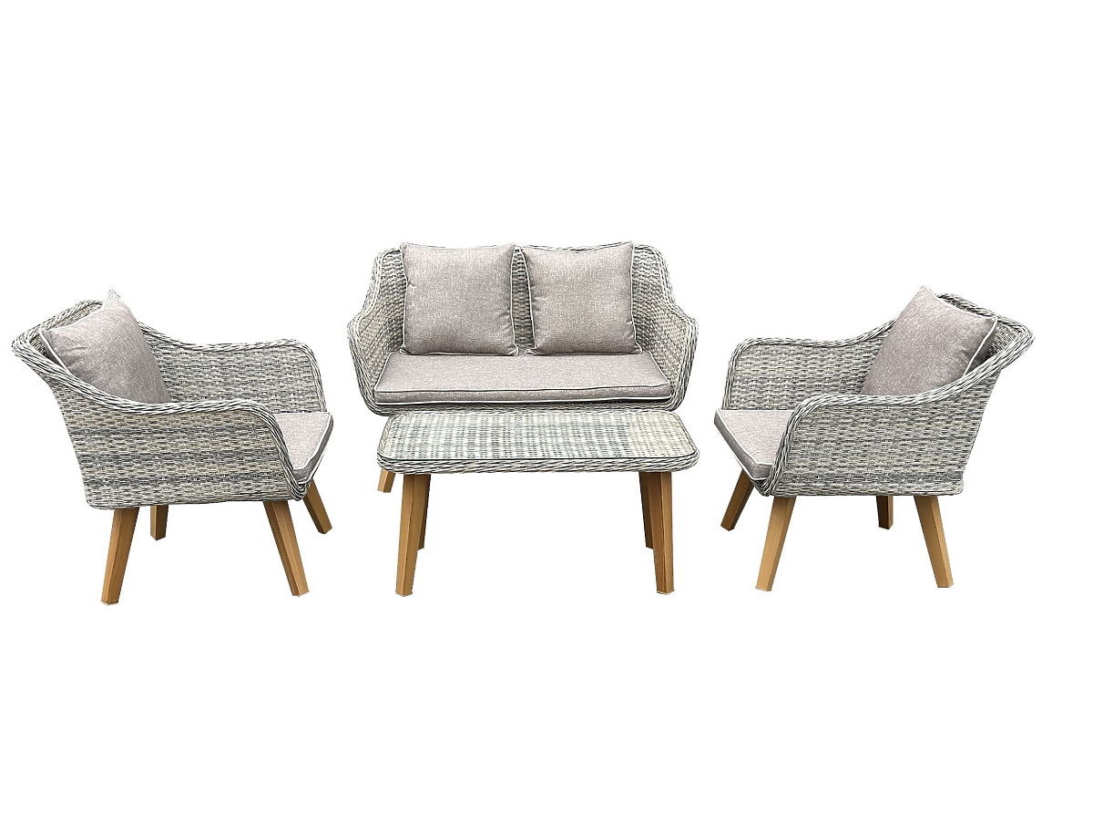 Elegantná záhradná súprava z technoratanu (2 x pohodlné kreslo, pohovka + stolík) LARGO sivá nejedno