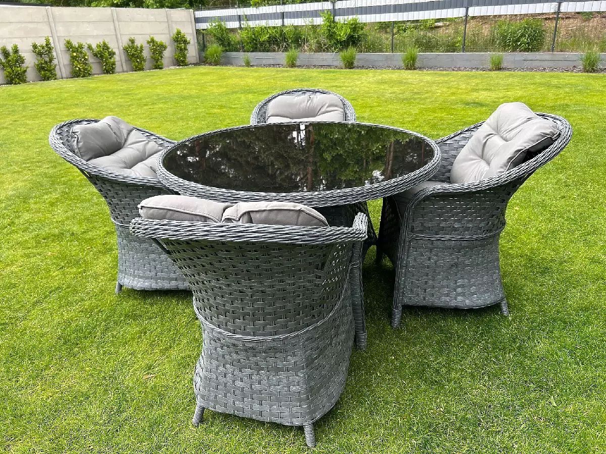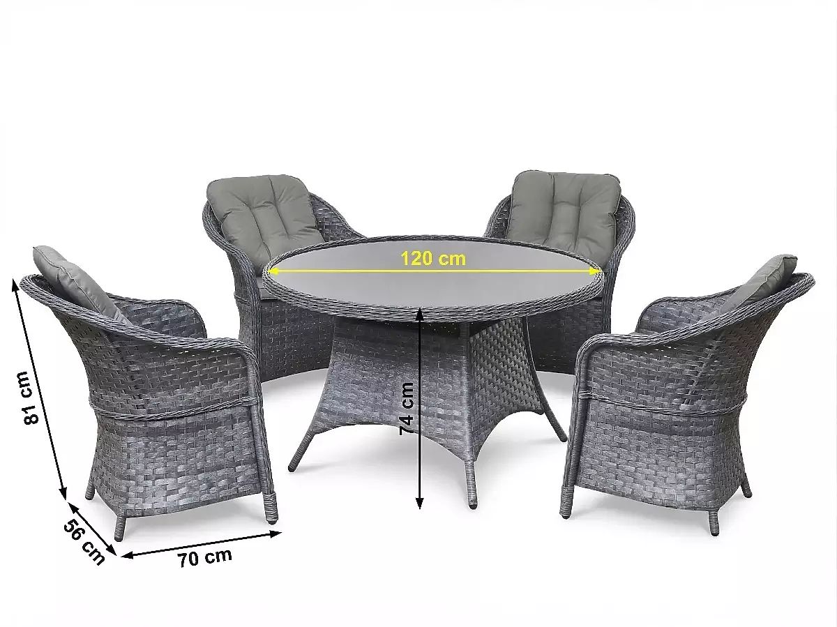 Jedálenská súprava z technoratanu (okrúhly stôl + 4 kreslá) MODERNO sivá