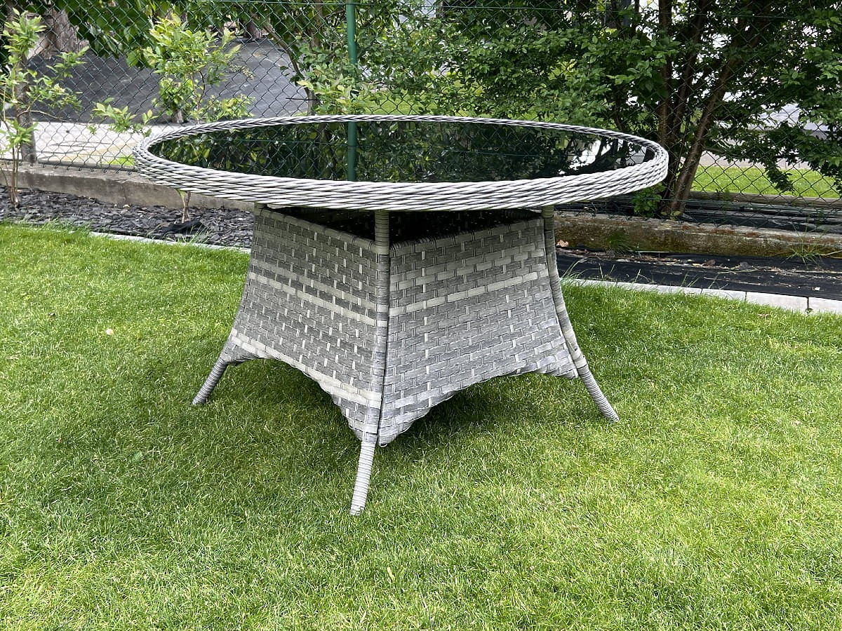 Veľký okrúhly stôl z technoratanu MODERNO svetlosivý
