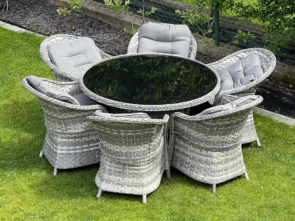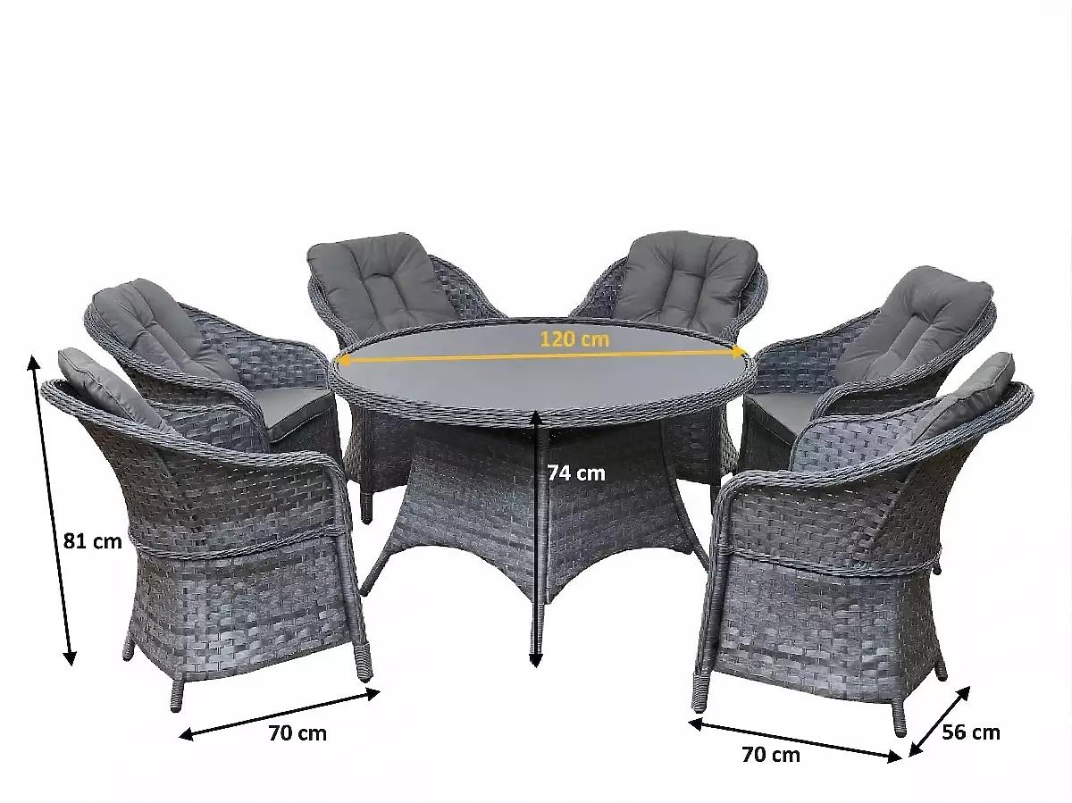 Veľká jedálenská súprava z technoratanu (6 kresiel + stôl) MODERNO svetlosivá