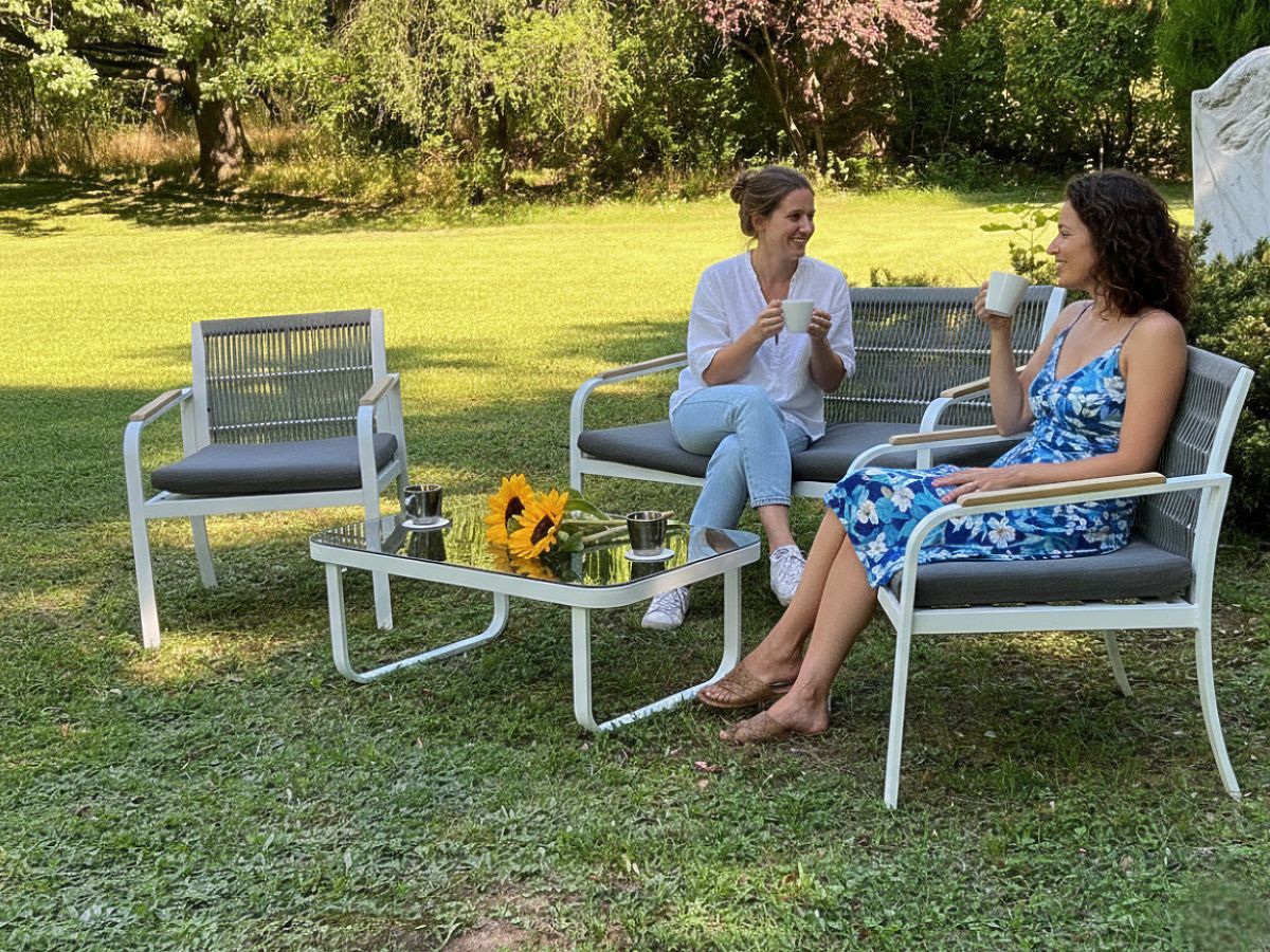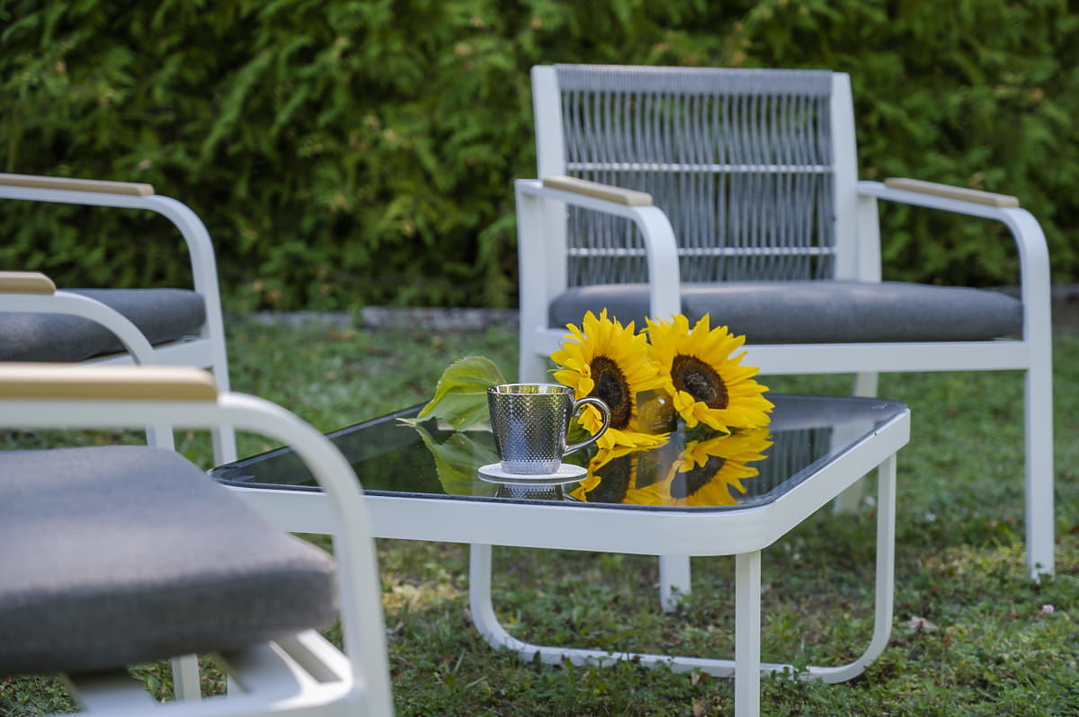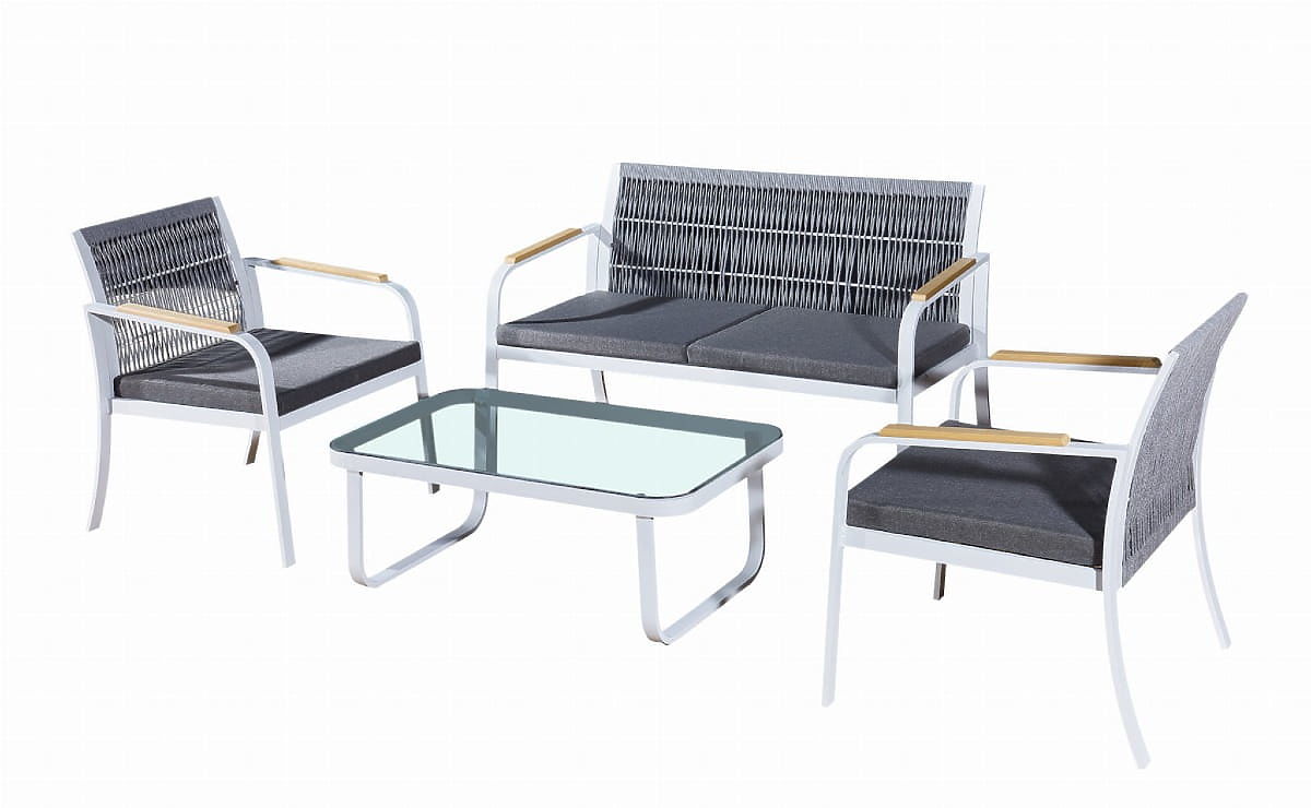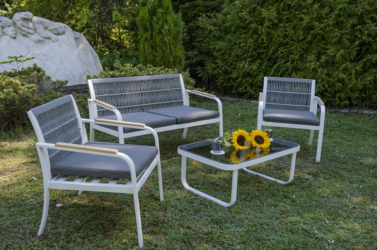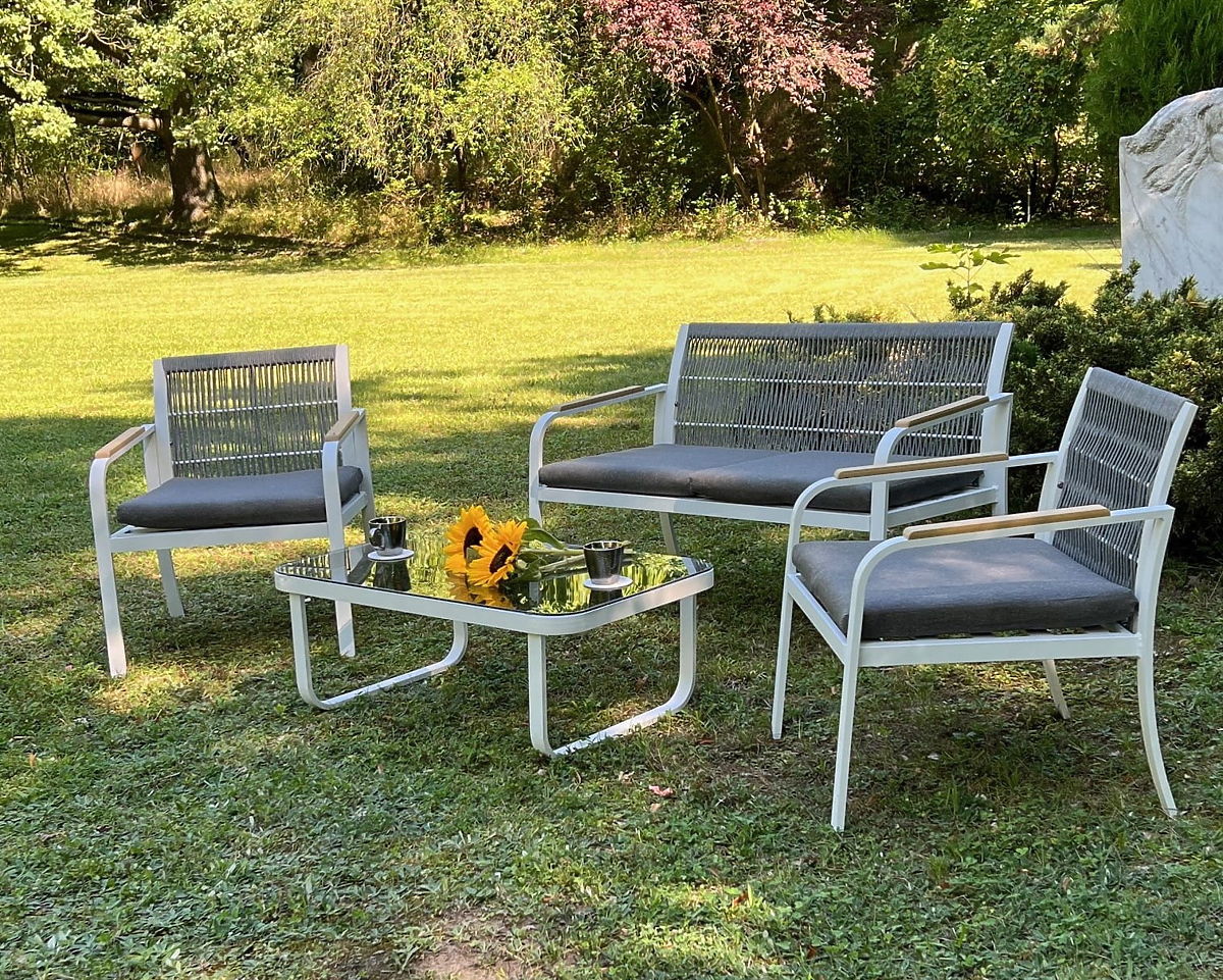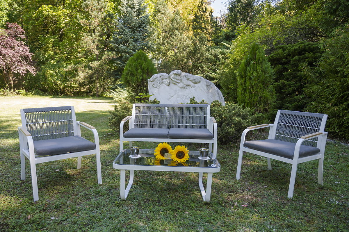 Sada záhradného nábytku z hliníka (2 x kreslo, pohovka + stolík) RARO biela, šedá