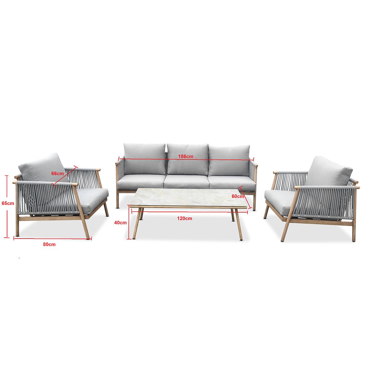 Hliníková sada terasového nábytku (Veľká pohovka, 2 x kreslo a stolík) BLANDO svetlosivá, hliník