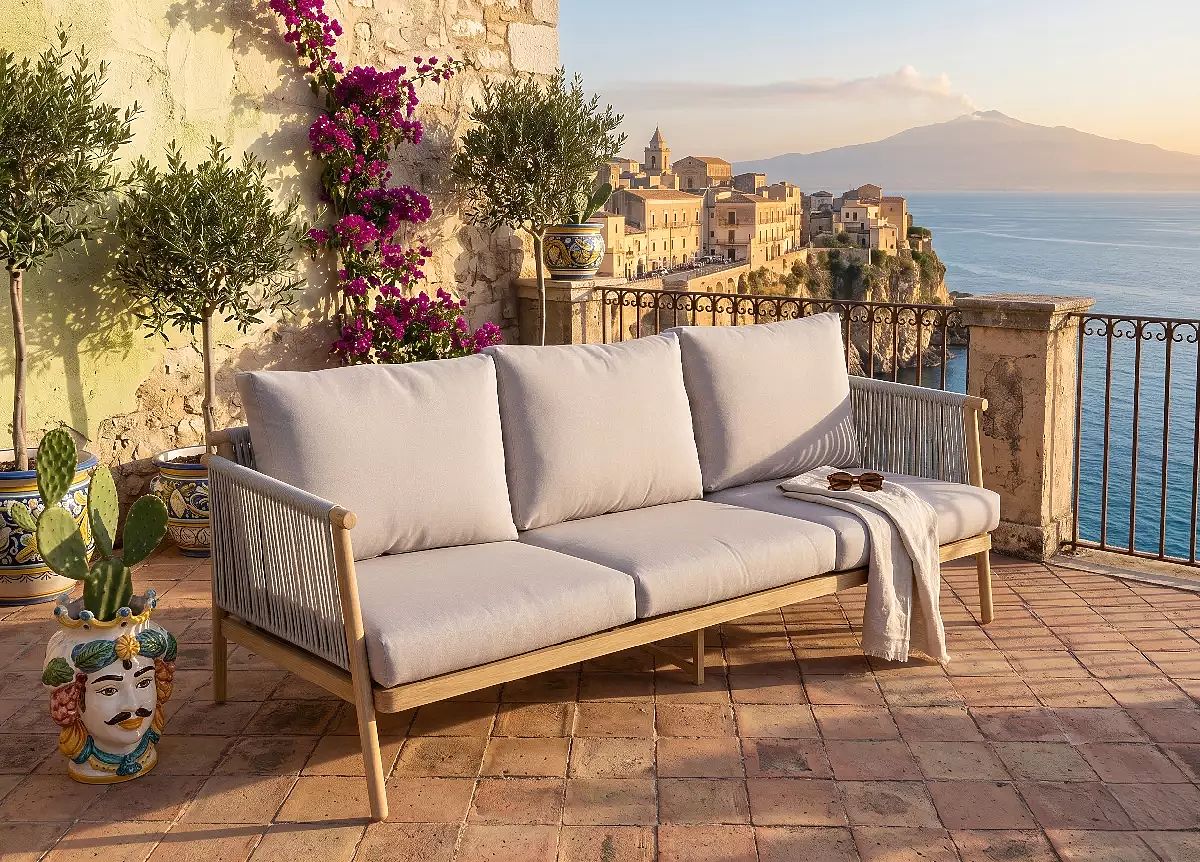 DODANIE PLÁNOVANÉ NA ZAČIATOK APRÍLA 2026 Preneste pohodlie domácej obývačky priamo do svojej záhrady. Pohovka Blando je kvintesenciou moderného dizajnu, ktorá redefinuje pojem vonkajšieho odpočinku. Navrhnutá pre milovníkov estetiky a nekompromisnej trvanlivosti, tvorí ideálne centrum letnej relaxačnej zóny. Architektúra pohodlia a štýlu Pohovka Blando priťahuje pozornosť unikátnym spojením surového hliníka s jemným pletením syntetického lana. Táto vzdušná konštrukcia dodáva nábytku ľahkosť, vďaka čomu sa perfektne hodí ako na minimalistické terasy, tak do zelených zákutí domácich záhrad. Pevný rám z vysokokvalitného hliníka je plne odolný proti korózii a zároveň natoľko ľahký, aby umožňoval jednoduché usporiadanie priestoru. Použitie pružného syntetického lana nie je len otázkou dizajnu – je to materiál vytvorený pre prácu v premenlivých poveternostných podmienkach, ktorý si zachováva svoj tvar a farbu po mnoho rokov. Srdcom pohovky sú silné, mäkké vankúše o výške až 10 cm. Vybavené snímateľnými poťahmi, zaručujú najvyšší komfort používania a jednoduchú údržbu čistoty. Technická špecifikácia Celkové rozmery: 186x66x66cm Výška sedadla: 26cm + 10cm (vankúš) Materiál rámu: práškovo lakovaný hliník Povrchová úprava: pletené syntetické lano Počet miest: 3 osoby Prečo Blando? Výberom pohovky Blando investujete do nábytku, ktorý obstojí v skúške času. Jej odolnosť voči UV žiareniu a vlhkosti z nej robí ideálnu voľbu pre jarnú a letnú sezónu, a nadčasová forma nikdy nevyjde z módy. Je to luxusný prvok, ktorý premení váš balkón, terasu či patio na súkromnú oázu pokoja.