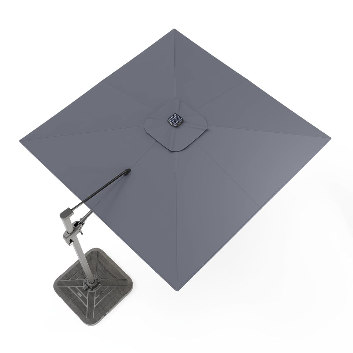 Slnečník Shade Deluxe vám poskytuje plnú kontrolu nad relaxáciou – otočenie o 360° a nastavenie uhla sklonu zabezpečujú tieň presne tam, kde ho potrebujete. Solárne LED osvetlenie umožňuje užívať si večerný odpočinok v príjemnom svetle, zatiaľ čo pevná konštrukcia a odolný poťah zaručujú komfort a trvanlivosť na mnoho rokov.