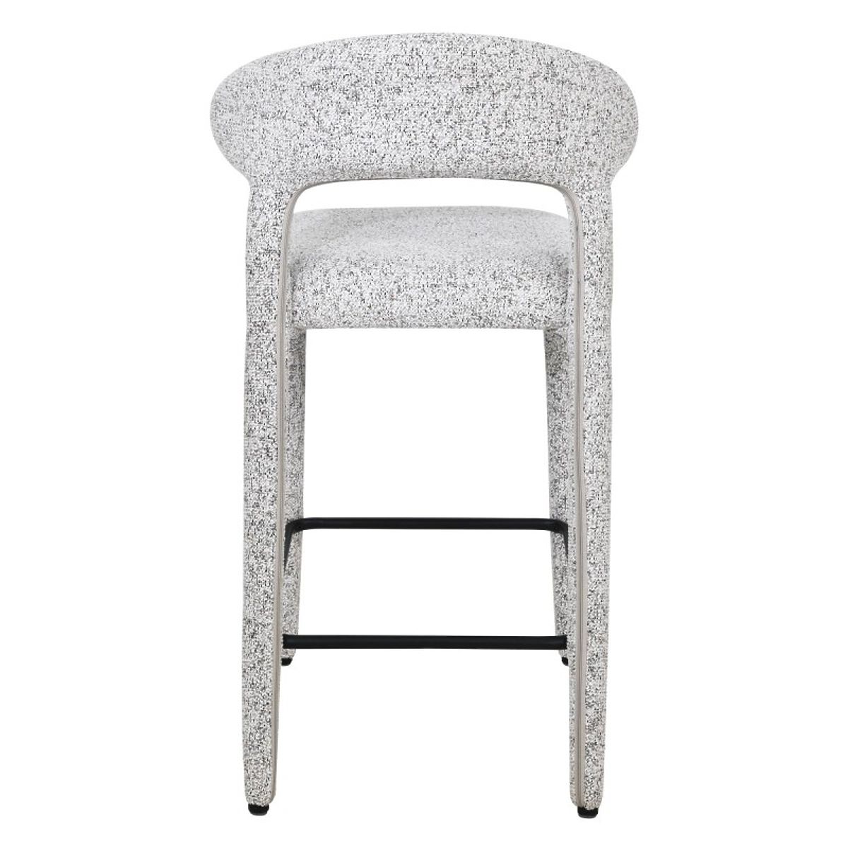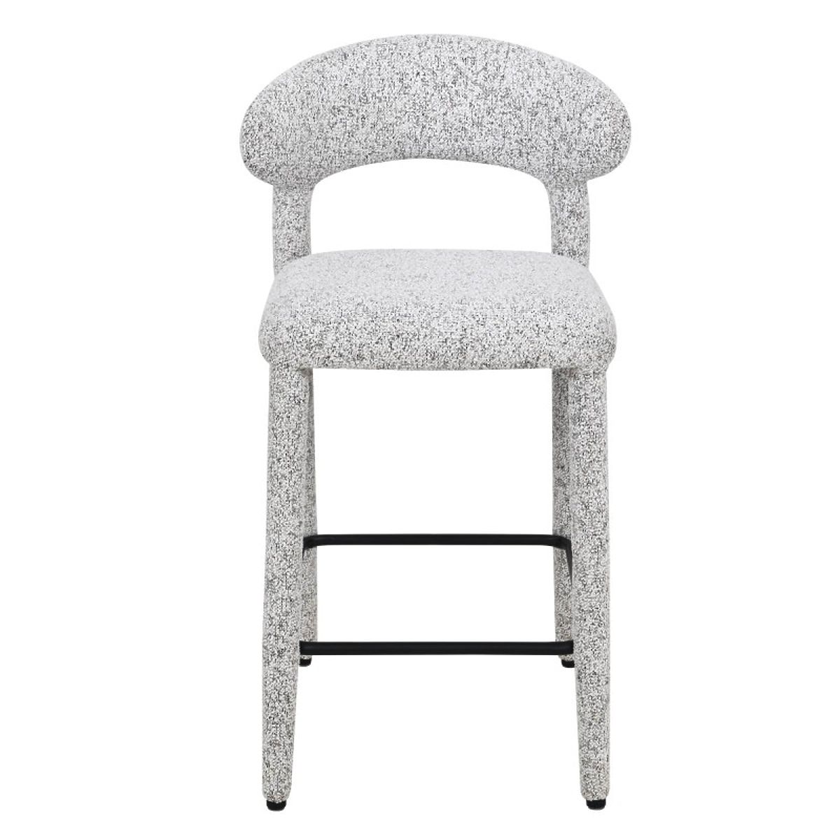 Barová stolička Hiroki je štýlovou a funkčnou voľbou, ktorá sa skvele hodí na umiestnenie pri kuchynskom ostrovčeku, čím vytvára pohodlné miesto na konzumáciu jedál. Jej melírované čalúnenie s viacfarebným vzorom dodáva interiéru útulný a elegantný charakter.