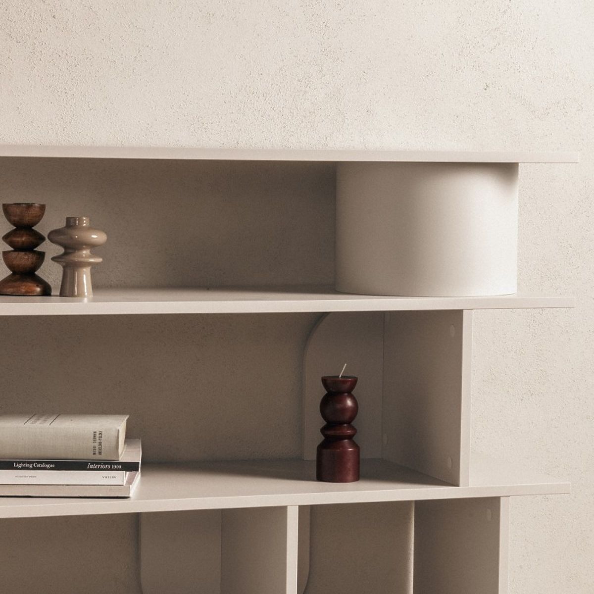 Regál Rangali je ideálnou kombináciou funkčnosti a výnimočného dizajnu. Kašmírový odtieň a štyri pevné police s dekoratívnymi oblúkmi vám umožnia esteticky usporiadať váš priestor a dodať mu moderný charakter.