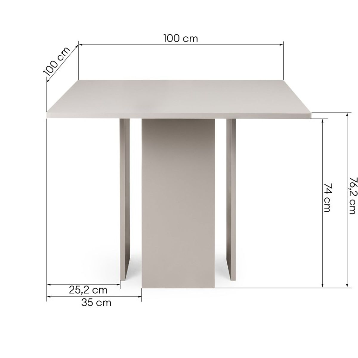Jedálenský stôl Gasper s rozmermi 100 × 100 cm v kašmírovej farbe je moderný nábytok, ktorý sa skvele hodí do kuchyne, jedálne alebo obývačky. Štvorcová doska poskytuje pohodlné miesto pre štyri osoby, vďaka čomu je stôl ideálny pre byty a menšie priestory.