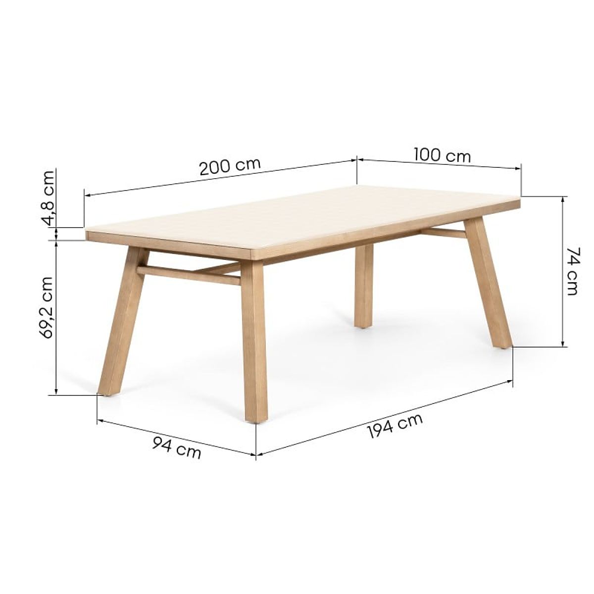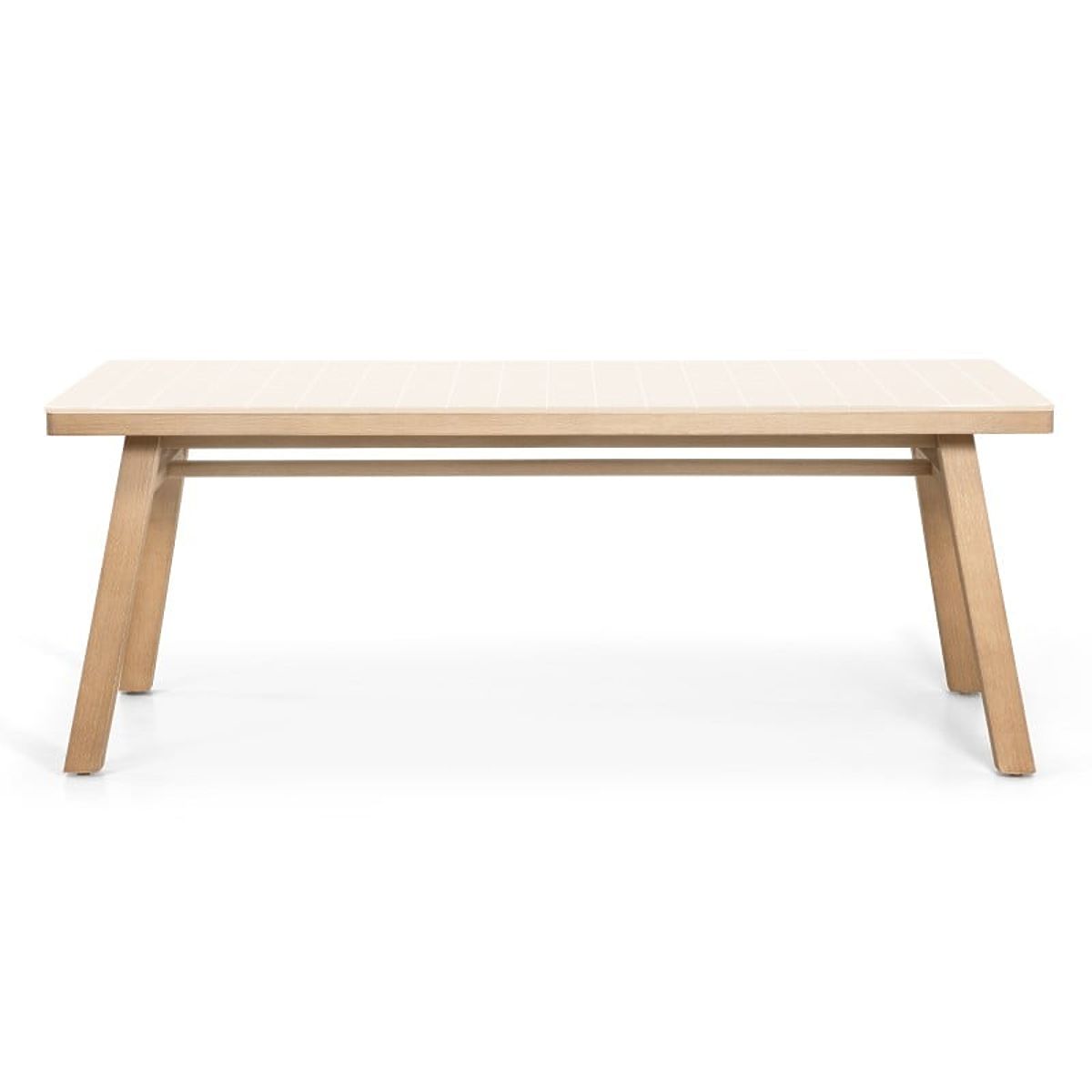 Lukahome.sk » Záhradný nábytok / Záhradné stoly / Záhradný stôl Wabi 200 cm s kamennou doskou, svetlé akáciové drevo/svetlo béžový, obdĺžnikový