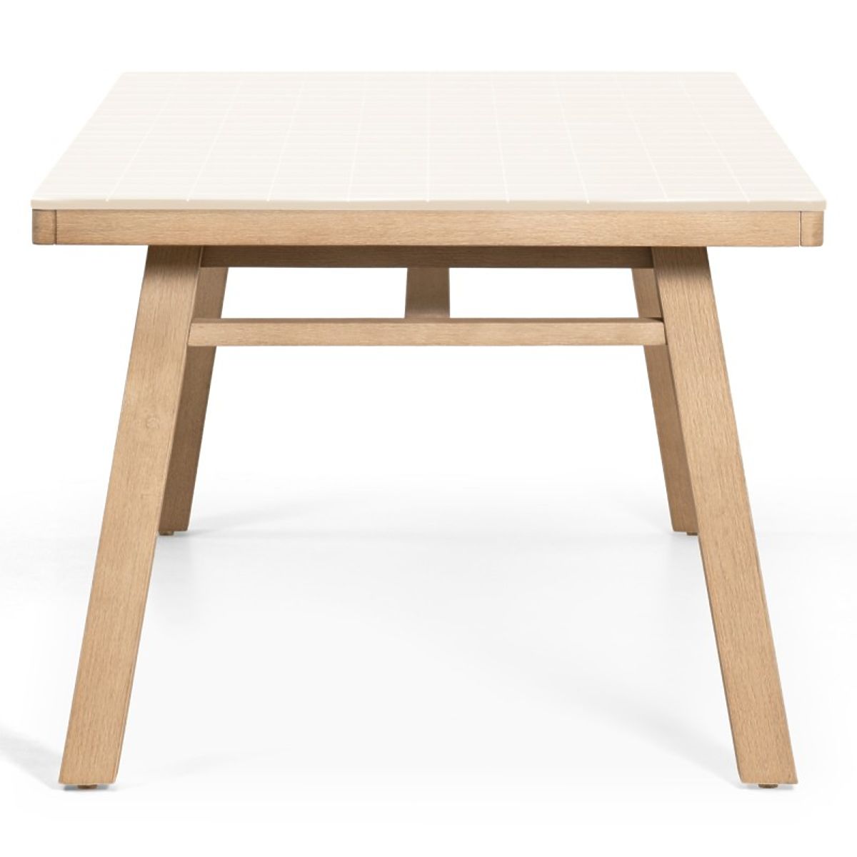 Wabi je stôl, ktorý spája surový, geometrický vzor s teplom prírodného dreva. Svetlo béžová doska zdobená pravidelnou mriežkou dodáva celku sviežosť a charakter, vďaka čomu nábytok priťahuje pohľady a krásne dopĺňa modernú záhradu.