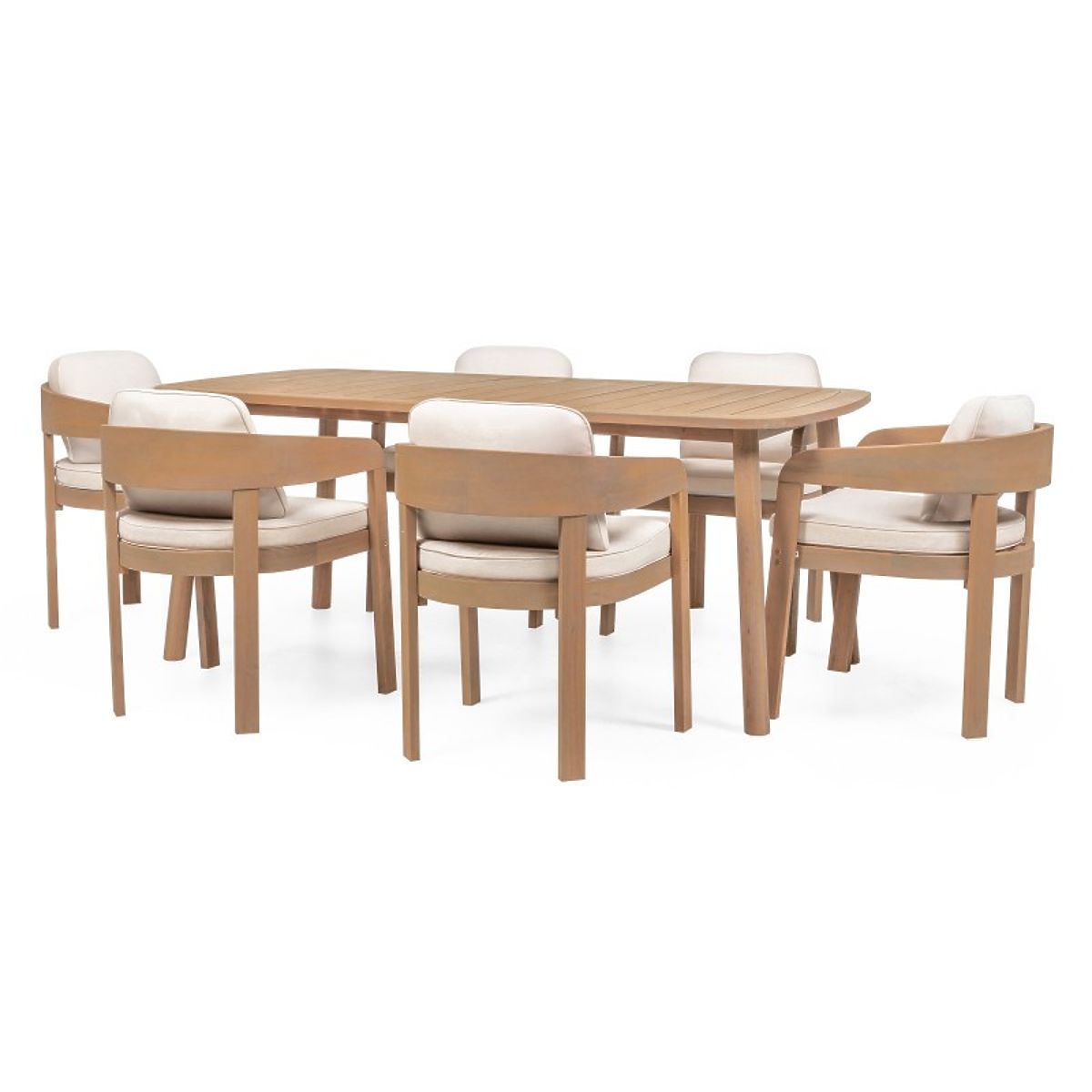 Lukahome.sk » Záhradný nábytok / Záhradné sety / Záhradný set Satori, stôl 183 cm + 6 stoličiek, akáciové drevo FSC, teakový vzhľad, béžový, zaoblený